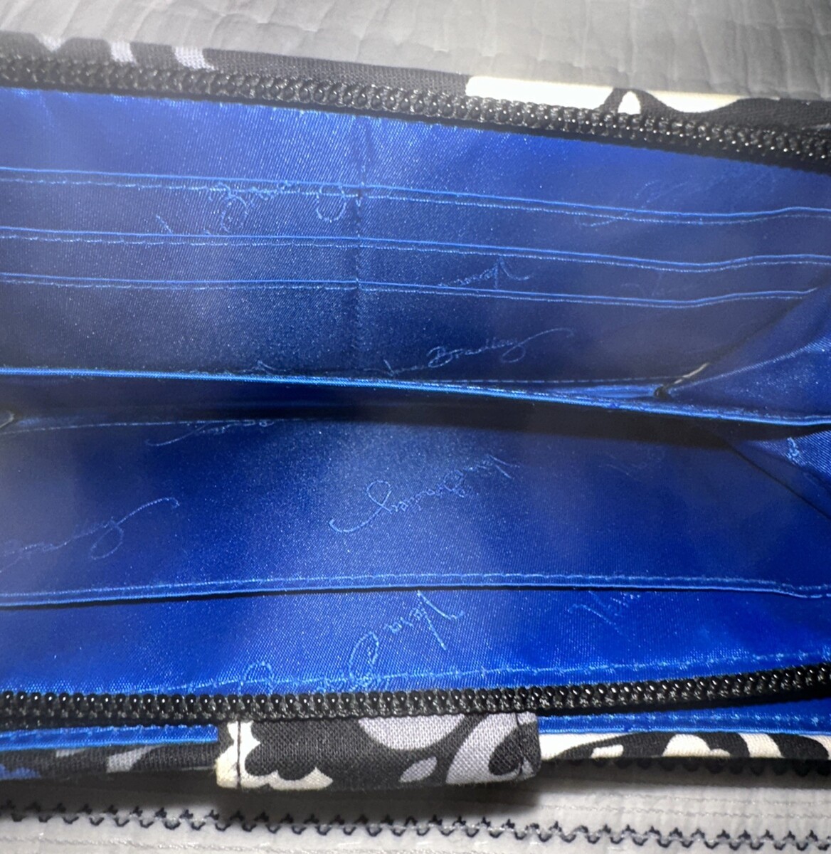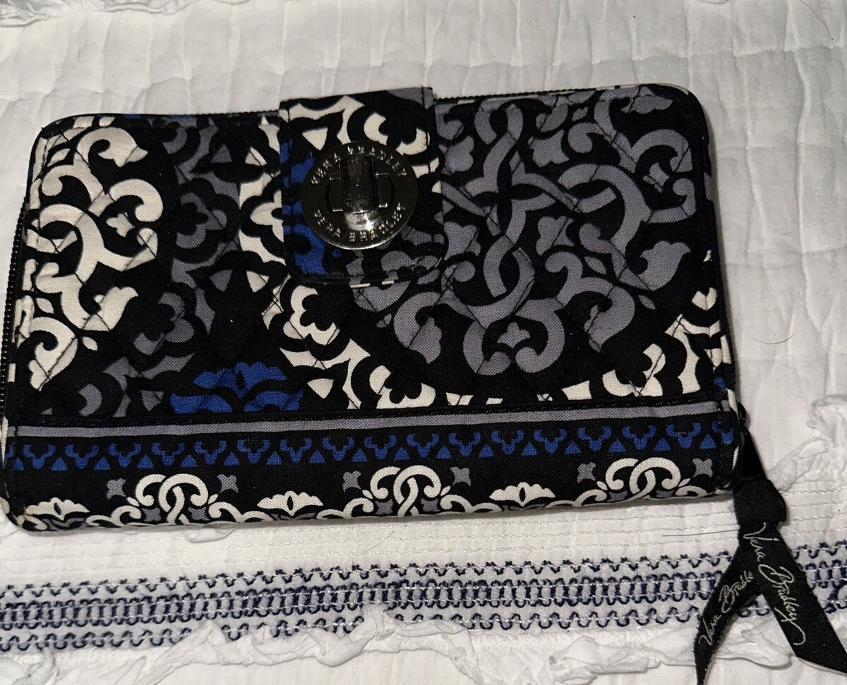 Vera Bradley Canterbury Pattern Turn Lock Zip Around Wallet Cobalt Blue Black