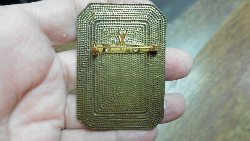 The pin/pendant (glued on the back) combination on the back of the piece of brass makes it easy to wear as a pin or pendant.