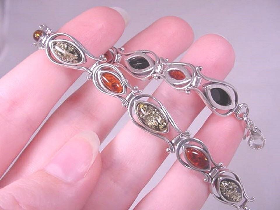 (Internal #PB-8) You are bidding on this natural, genuine, beautiful petite Baltic ORANGE and GREEN AMBER bracelet from Poland, mined on the shores of the Baltic Sea; set in .925 sterling silver as a 7-3/8" long bracelet. This is the exact item you would receive.