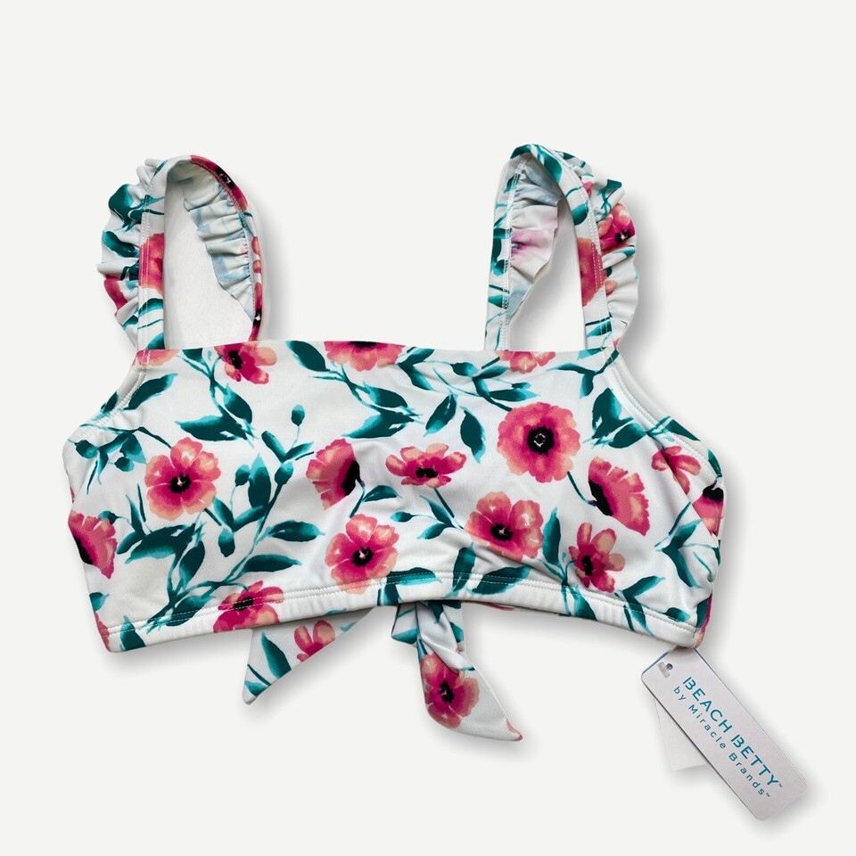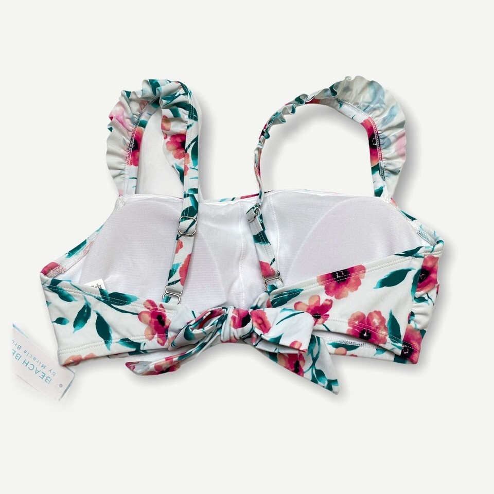 NWT Beach Betty Miracle Brands Ruffle Strap Floral Bikini Top Large White Pink