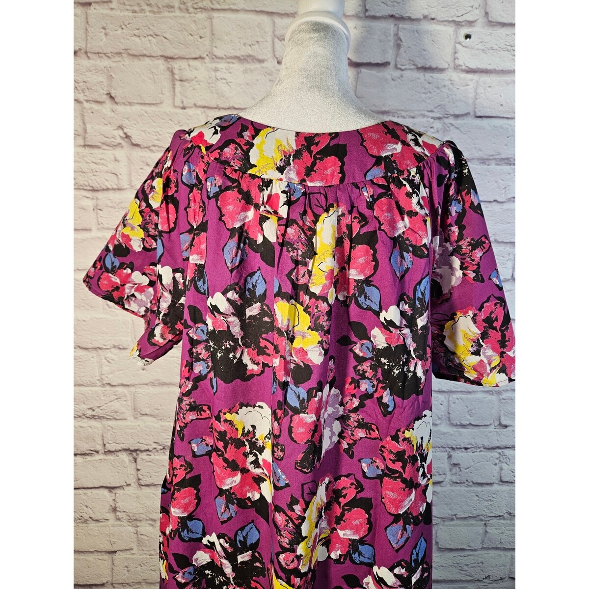 Anthony Richards Purple Floral Mumu Dress Size L New Lightweight Short Sleeve