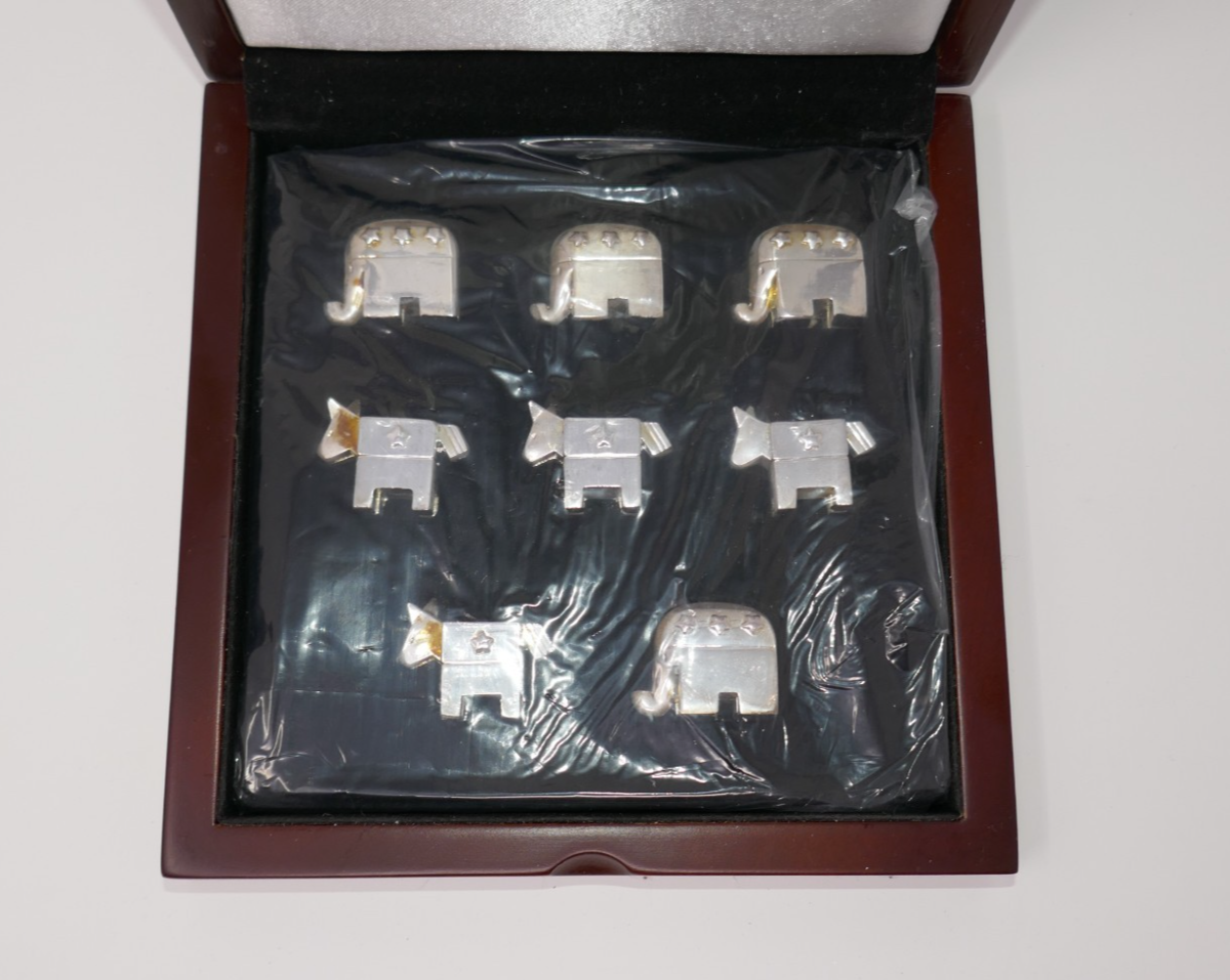 Wallace Silversmiths Party Animals Democrat Republican Tic Tac Toe Set NO BOX