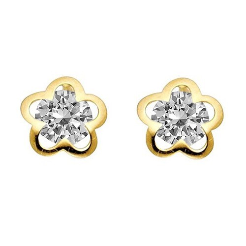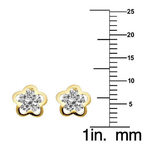 Genuine 14k Yellow Gold Cubic Zirconia 7mm Flower Screwback Safety Earring Studs
