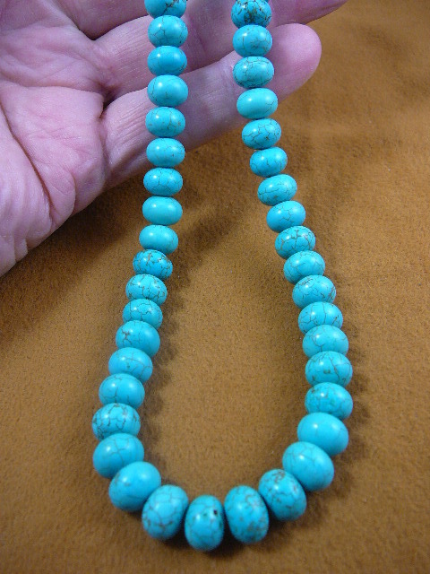 (Internal #V-326-11) You are bidding on a beautiful, handmade, necklace made with Chinese turquoise, flattened round beads "donut beads" 10x6 mm. Necklace is 18" long, with gold safety closure.