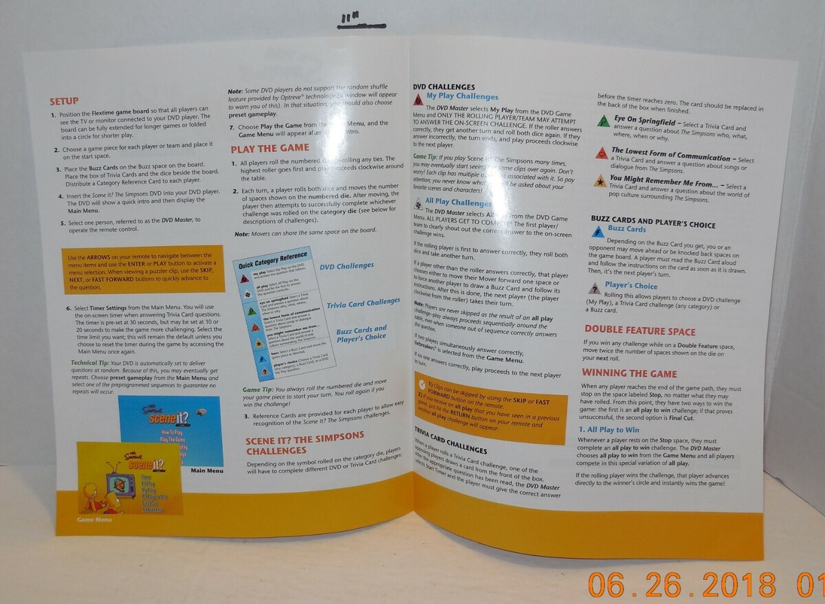 2009 Screenlife The Simpsons Scene it DVD Board Game Replacement Instructions