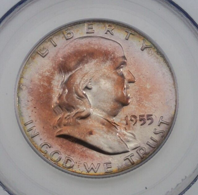 1955 50C Silver Franklin Half Dollar Proof Graded by PCGS as PF67! Nice Toning!