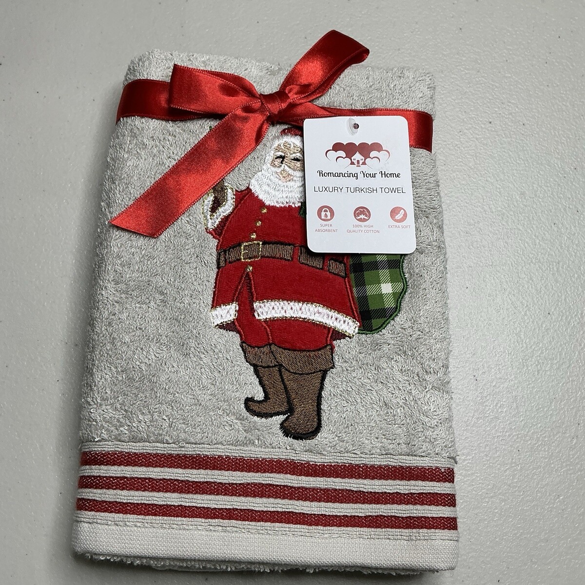 Kitchen Hand Towels Christmas SANTA WITH GIFTS Dish Towels Bar Towels 18” X 25”