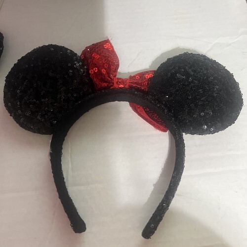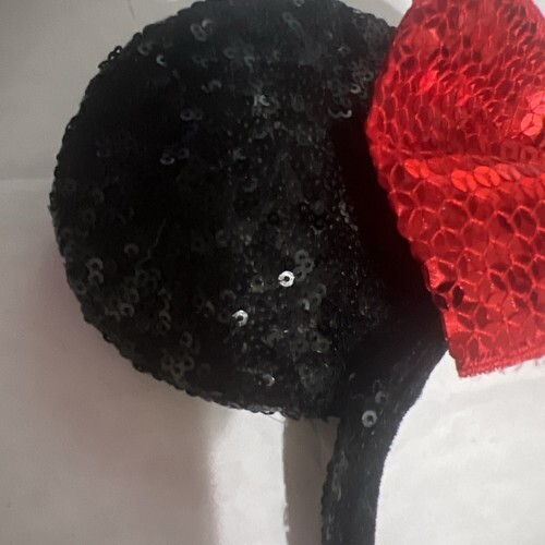 Disney Parks Black & Red Sequin Minnie Mouse Ears Headband Bow Adult OS Mickey