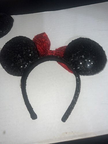 Preowned Minnie ears. Do not know if they are authentic. The tag has been cut off. The ears are not even on the headband. One ear is more forward than the other. Good condition otherwise.