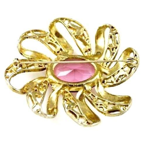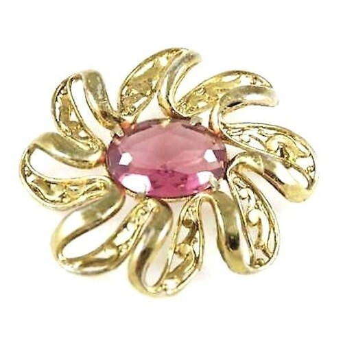 RETRO Vintage Statement Brooch Large Goldtone Pink Stone 1940S Loop