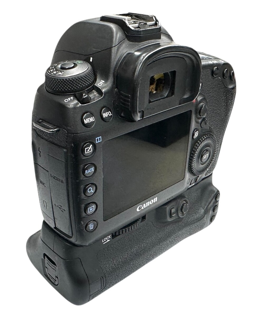 Type: Digital SLRBrand: CanonModel number: DS126601Model name: Canon EOS 5D Mark IVColor: BlackSize: 30.4mpBuilt-in flash: noCase included: noCharger included: yesCondition:UsedNotes:Comes with Gun Grip, 1 Battery, and Charger. Unit has some scratches by the left side of the buttons by the back screen.
