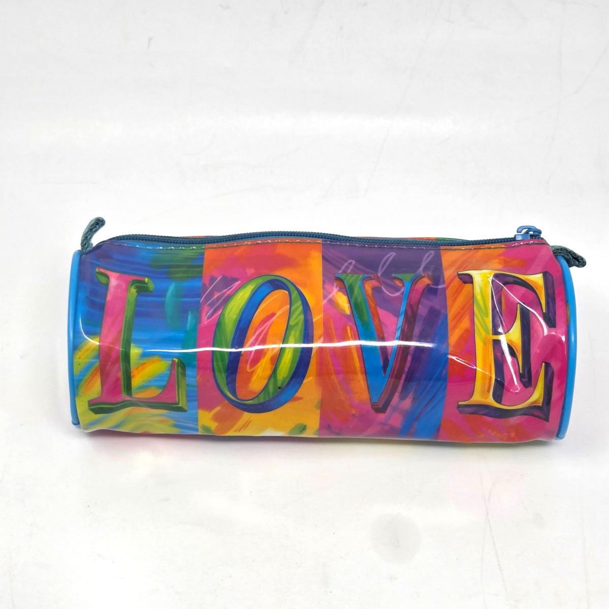 LISA FRANK LOVE ZIPPERED MAKEUP / PENCIL / STORAGE PLASTIC CASE RAINBOW COLOR
