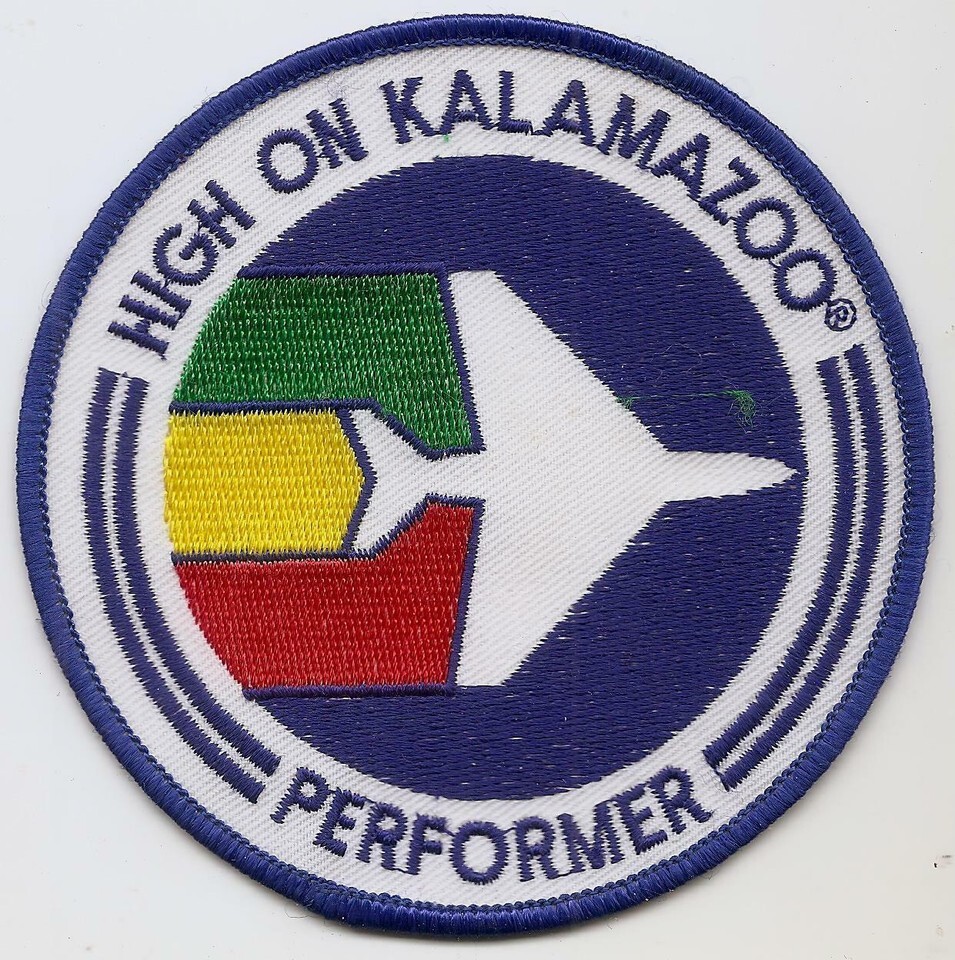 Vintage 4" Large "High On Kalamazoo - Performer" Air Museum Embroidered Patch - Unsure of the origin of this patch, might be from an Air Show or the Museum there, it is rather generic other than the location. Not asking much for it.