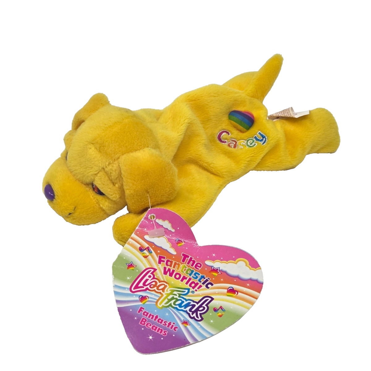 NEW VINTAGE 1998 LISA FRANK YELLOW CASEY DOG BEANIE STUFFED ANIMAL PLUSH TOY NEW