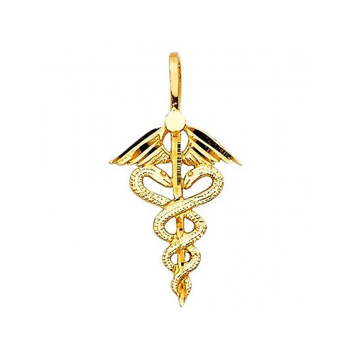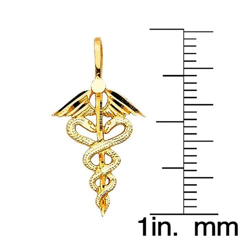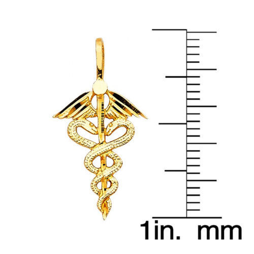 Genuine 14k Yellow Gold 0.82" Winged Caduceus Medical Symbol Nurse Pendant