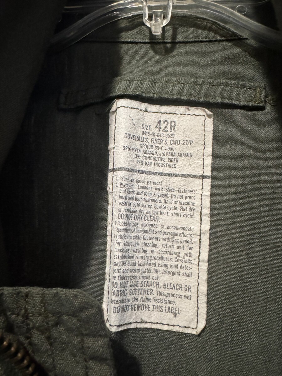 GENUINE US AIR FORCE GREEN NOMEX FIRE RESISTANT FLIGHT SUIT CWU-27/P - 42R.