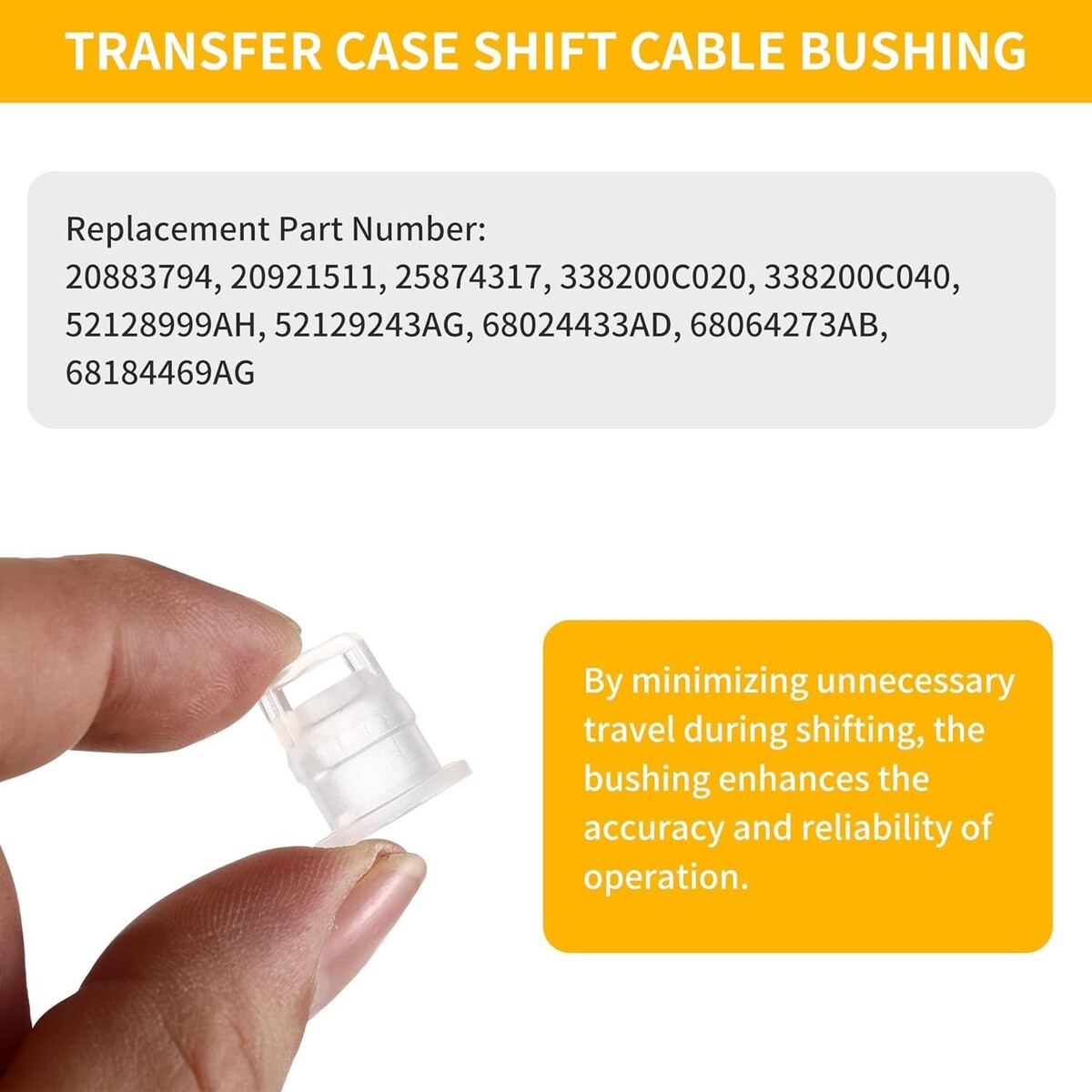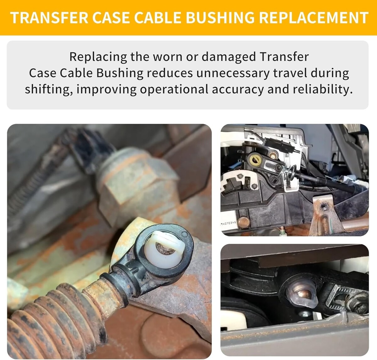 : Designed for hassle-free installation with no special tools required. Simply remove the console, locate the transfer case linkage, snap in the new bushing, and reconnect the linkage for a quick and efficient repair.