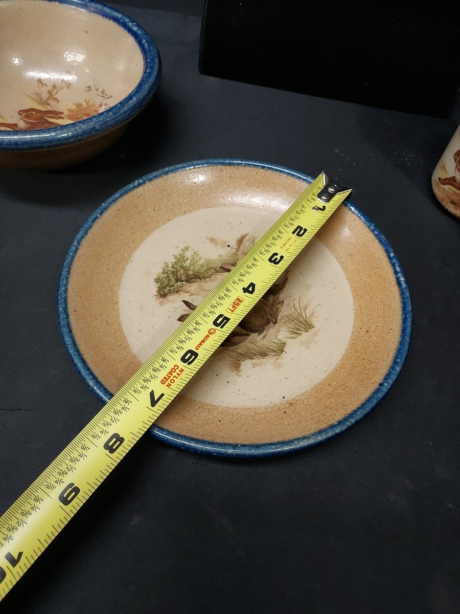 Vintage Monroe Salt Works Maine Pottery Bunny Rabbit Bowl Plate Mugs Lot Of 4. Condition is Used. Shipped with USPS Ground Advantage.