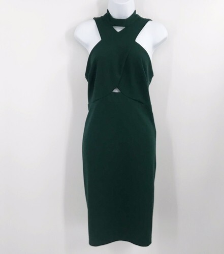 GUESS Emerald Green Cutout Halter Bodycon Sheath Dress Sz 10 Sleeveless Cocktail