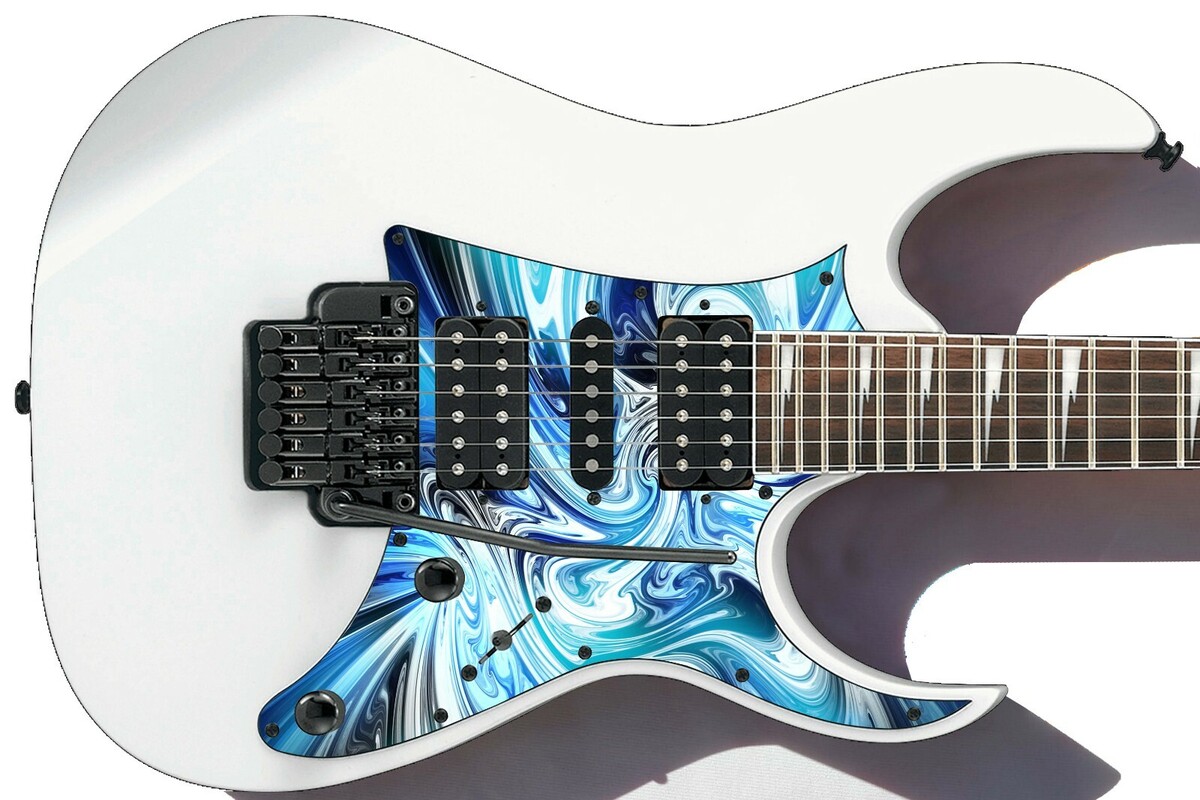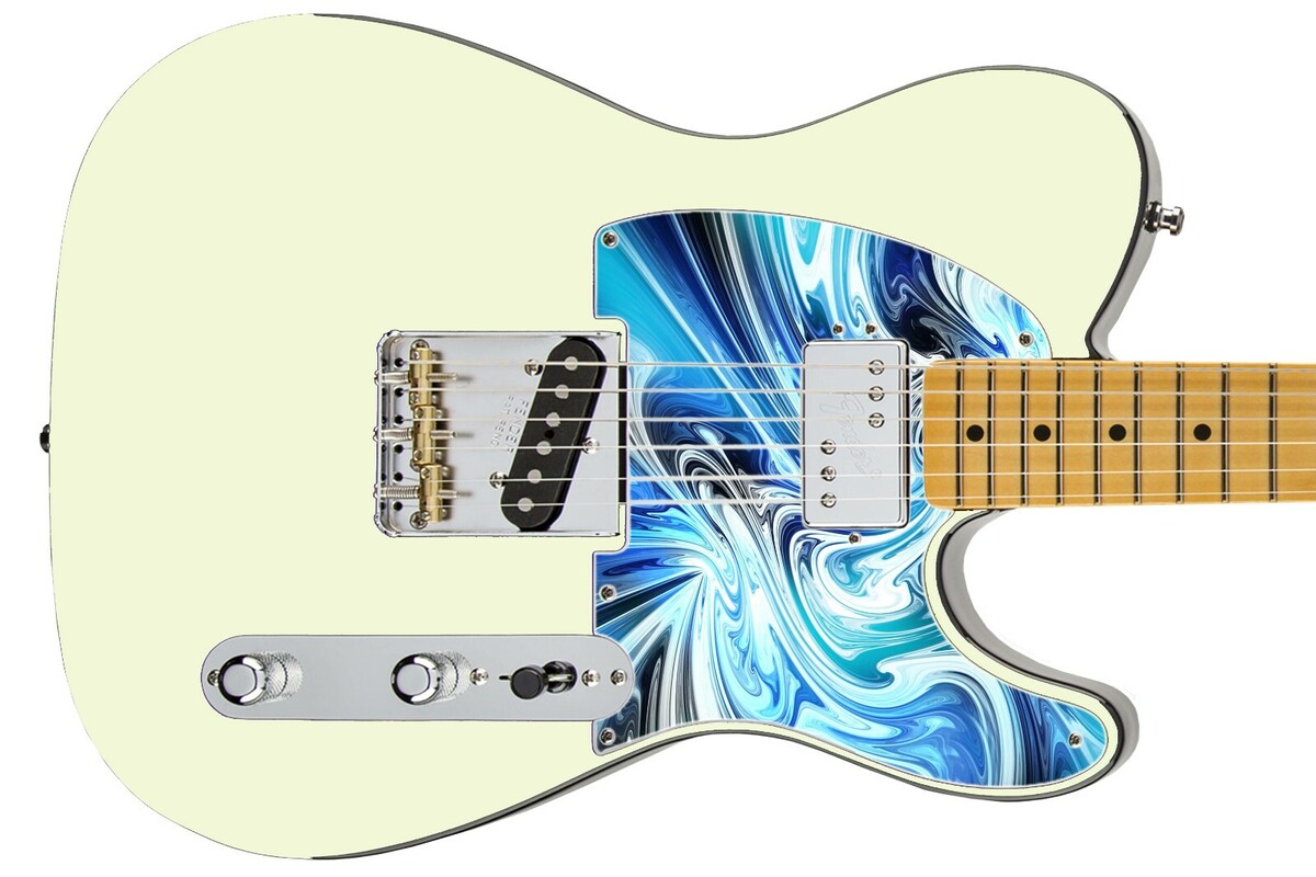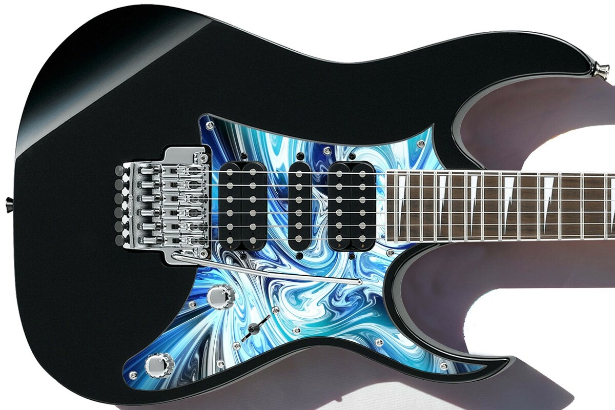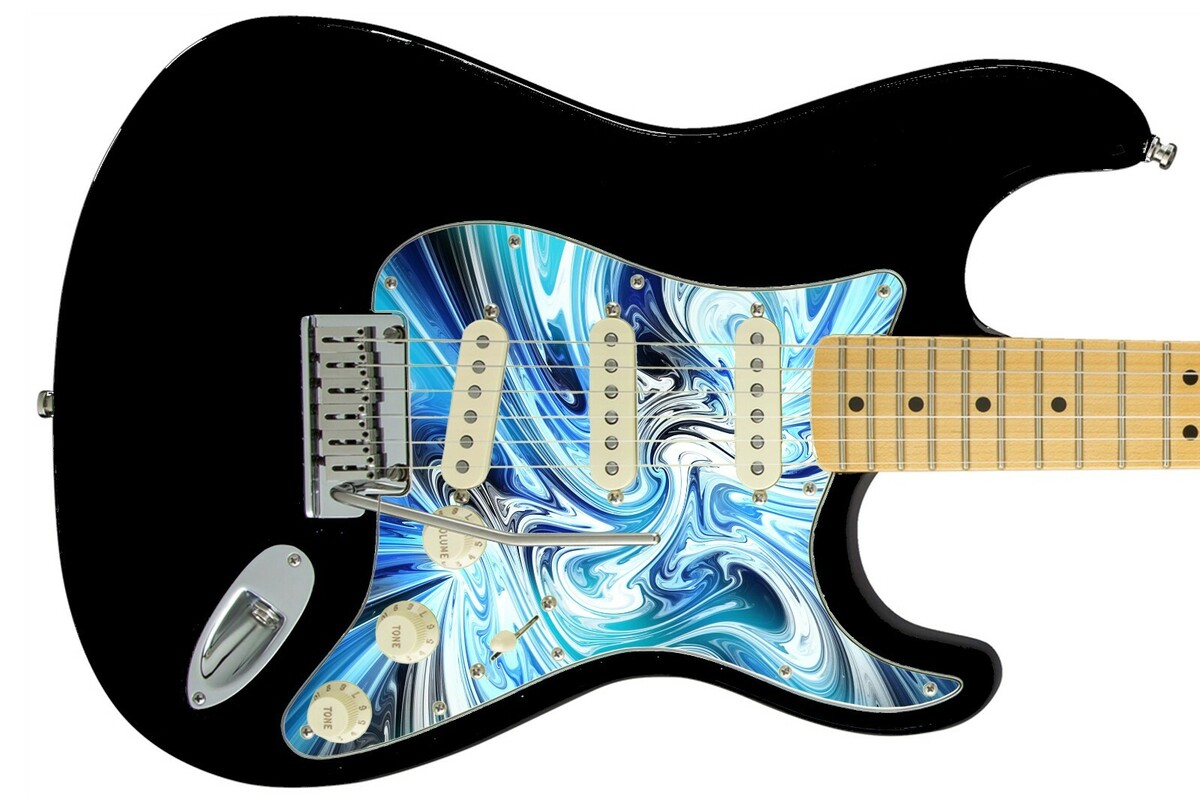 Pickguard Headstock Tremolo Skin Wrap Reskin for Guitars -Black Blue Swirl 627
