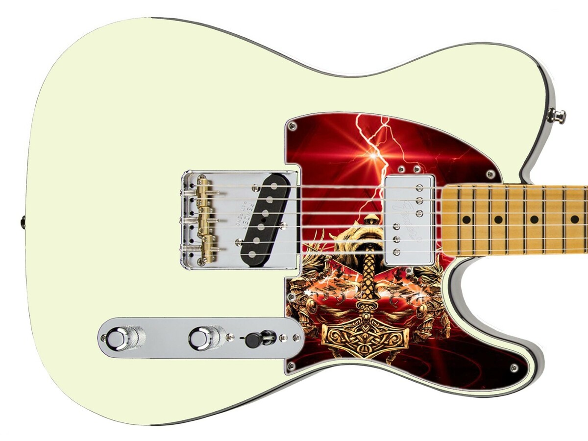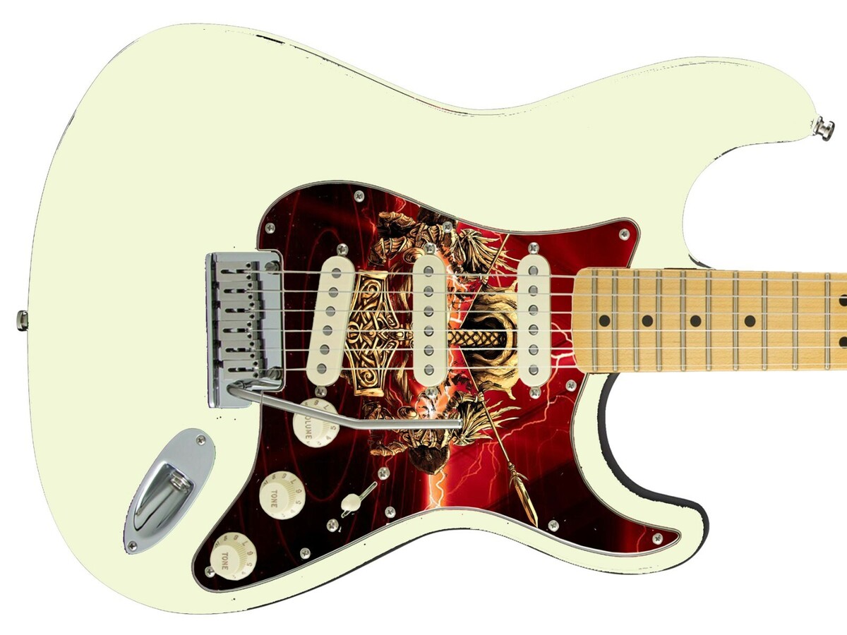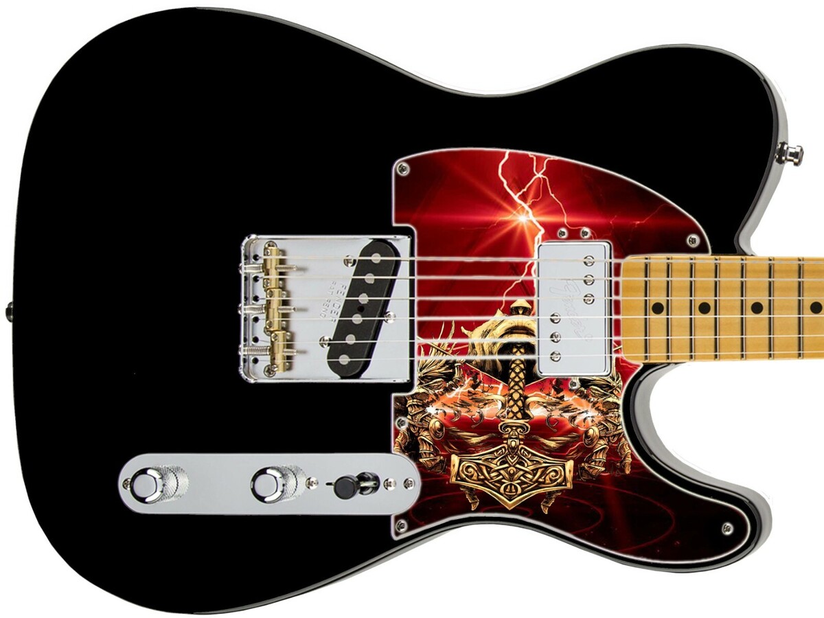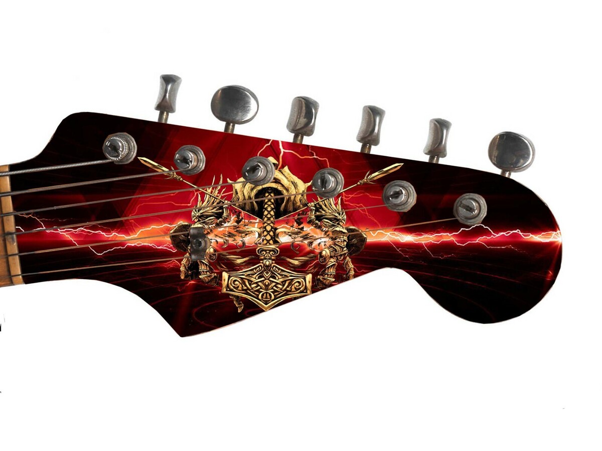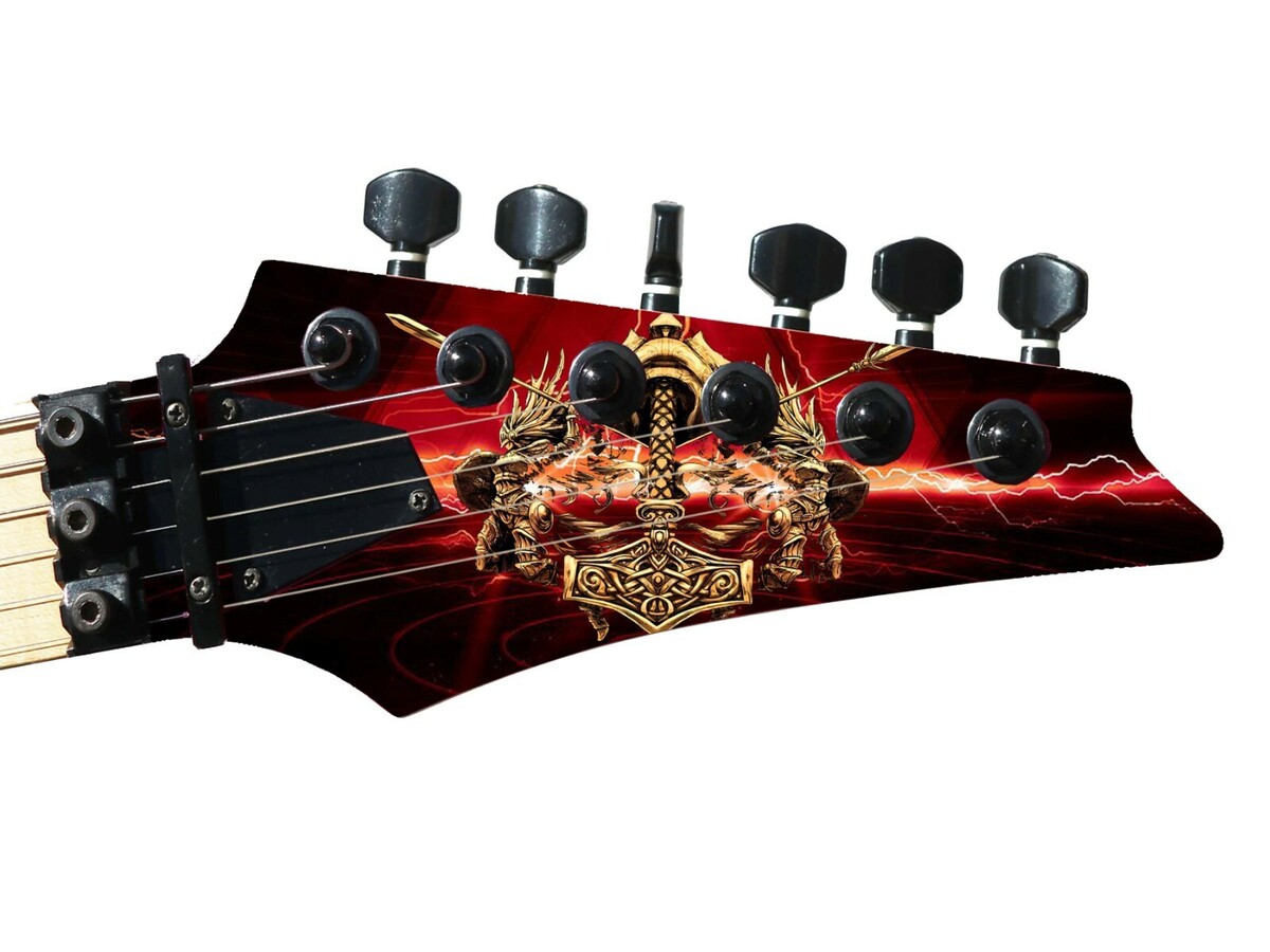 Pickguard Headstock Tremolo Skin Wrap Reskin for Guitars -Thor's Hammer Red 992
