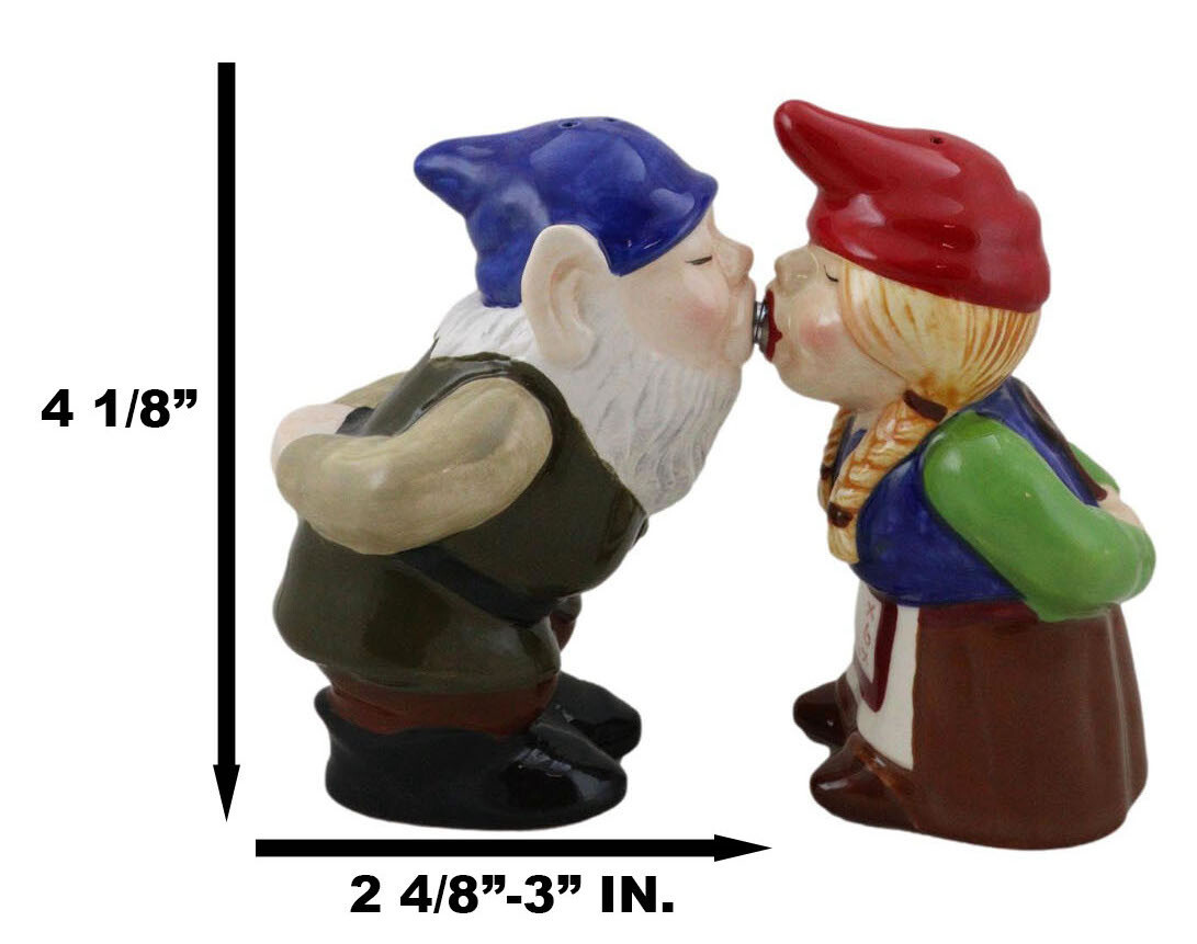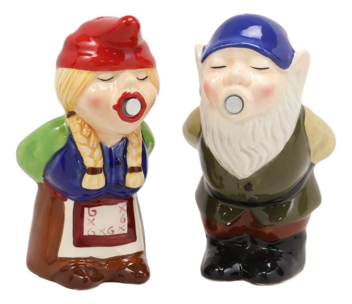 Ebros Kissing Mr Mrs Gnome Couple Magnetic Salt Pepper Shakers Ceramic Figurine Set