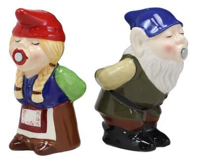 Kissing Mr & Mrs Gnome Couple Magnetic Salt Pepper Shakers Ceramic Figurine Set