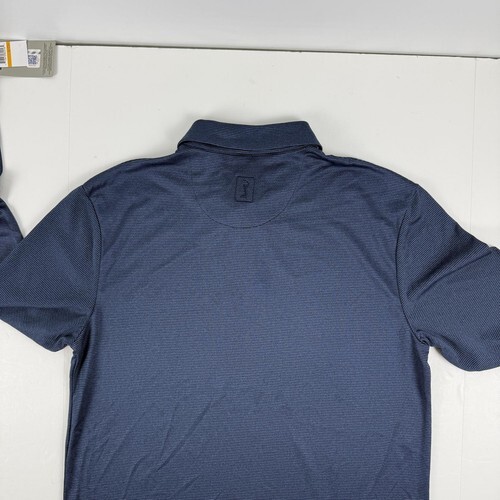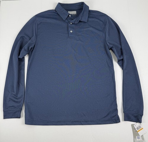 PGA Tour Long Sleeve Feeder Stripe Golf Polo Shirt DK Peacoat Htr-Small