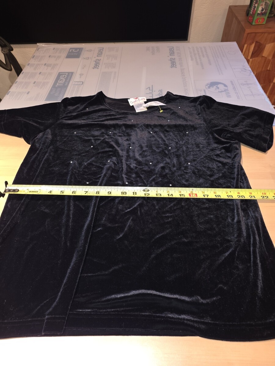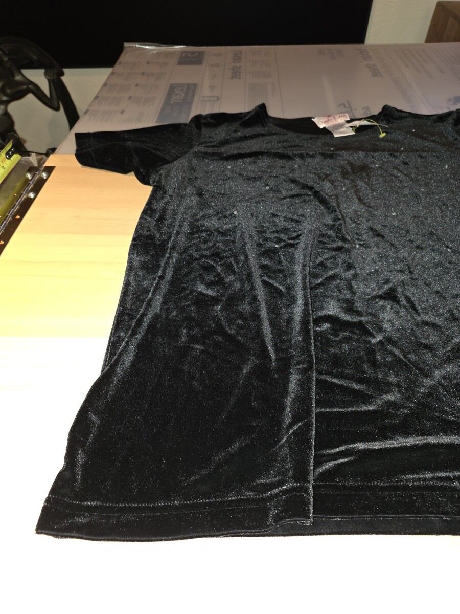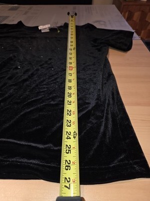 Quacker Factory Women's Black Velvet Short Sleeve Pullover Blouse Top L Sequins