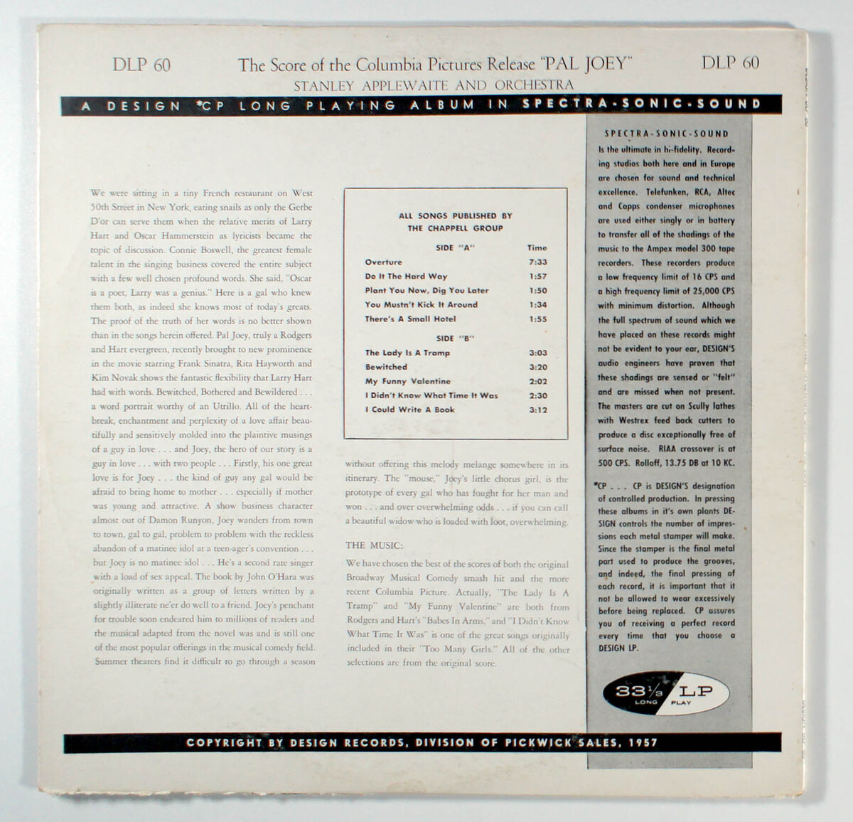 Stanley Applewaite - Pal Joey (1957) Vinyl LP • Soundtrack, Rodgers and Hart