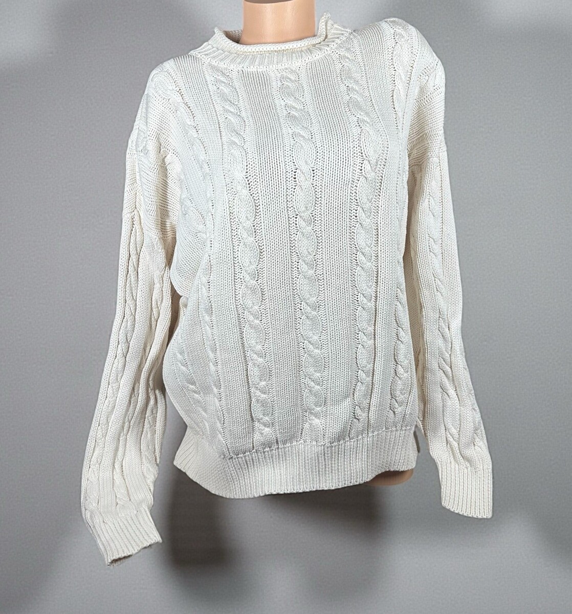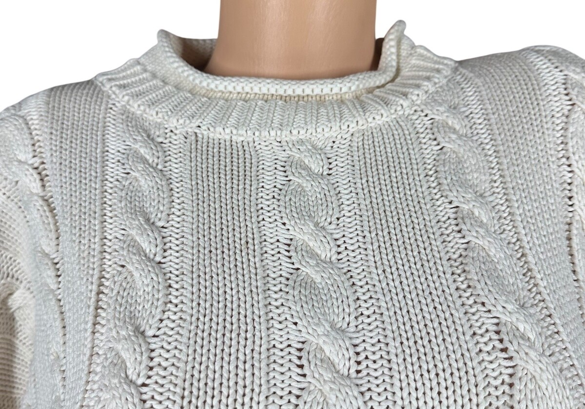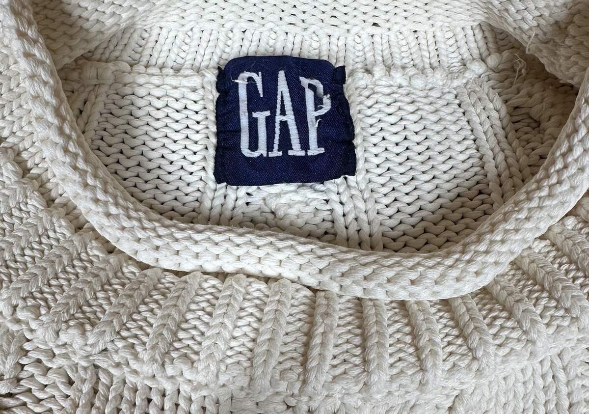 Vintage 90s GAP Cream Cable Knit Slouchy Oversize Fisherman Sweater Size Large