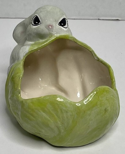 Vintage Holland Mold Rabbit Bunny Lettuce Cabbage Planter Spring Easter Summer