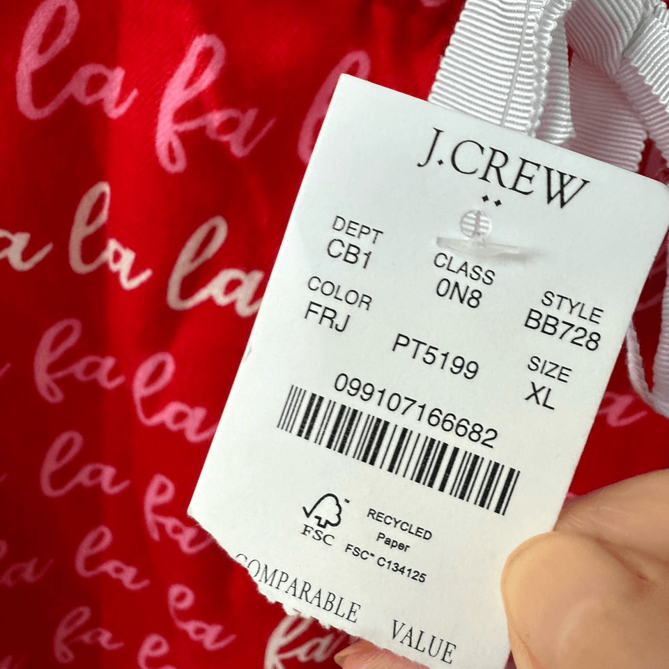 NWT J Crew Fa La La Red Cotton Flannel PJ Pajama Pants Bottoms $60 XL