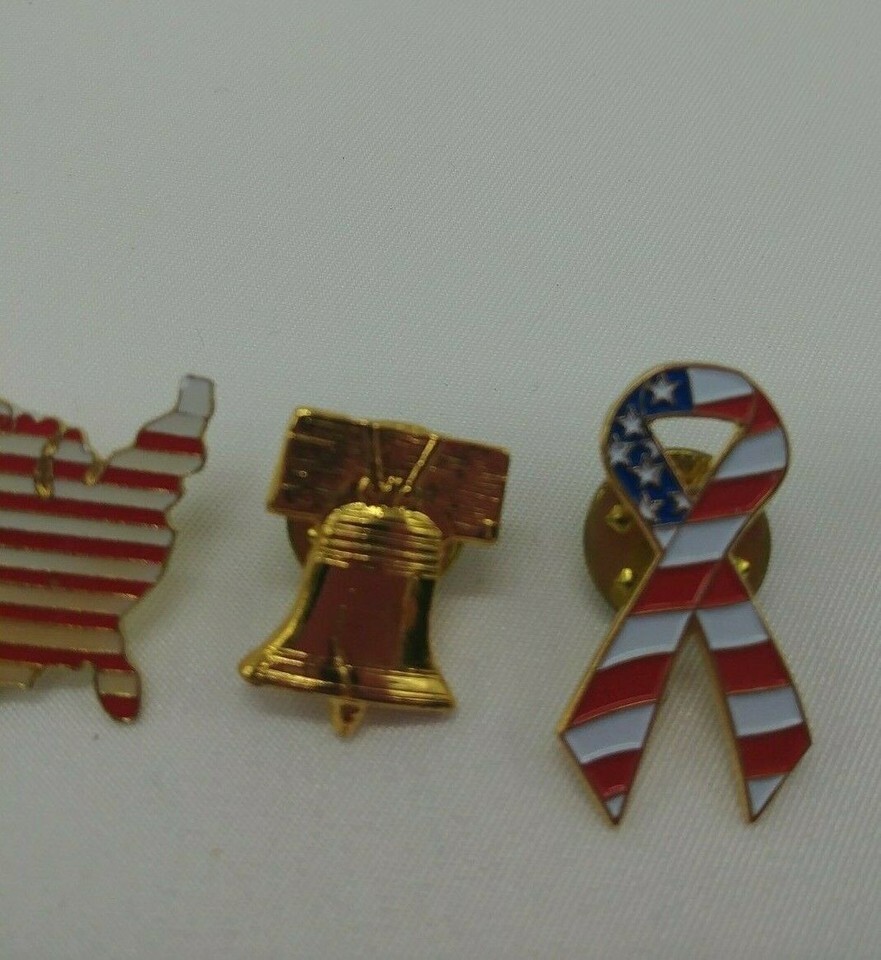 Lot Of 3 American Flag Bell Hat Lapel Pin and similar items