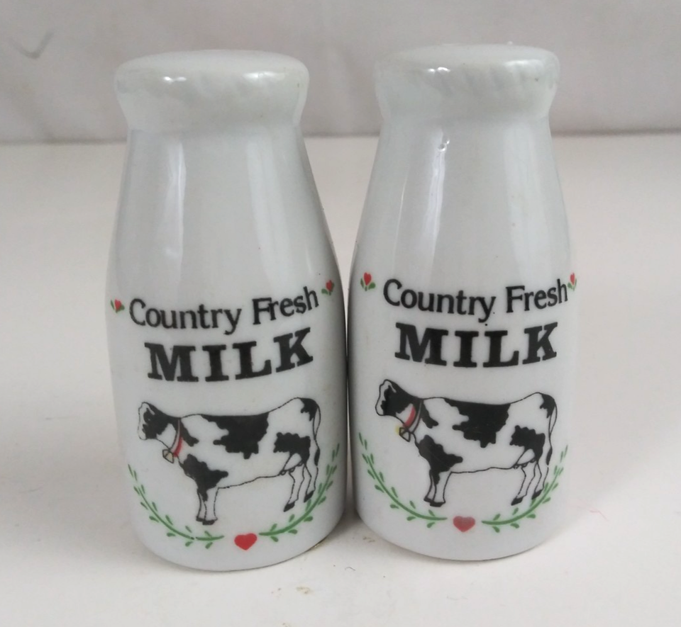 This is for a Vintage Country Fresh Milk Bottle 3.18" Salt Pepper Shakers.