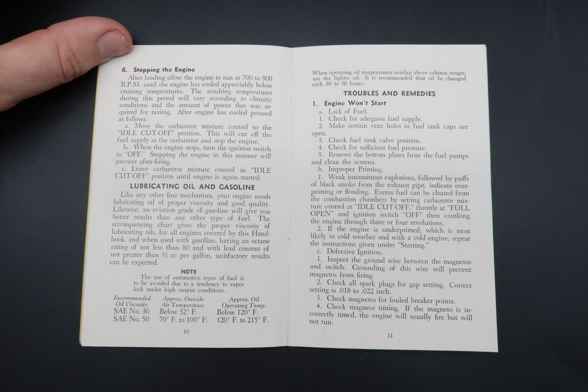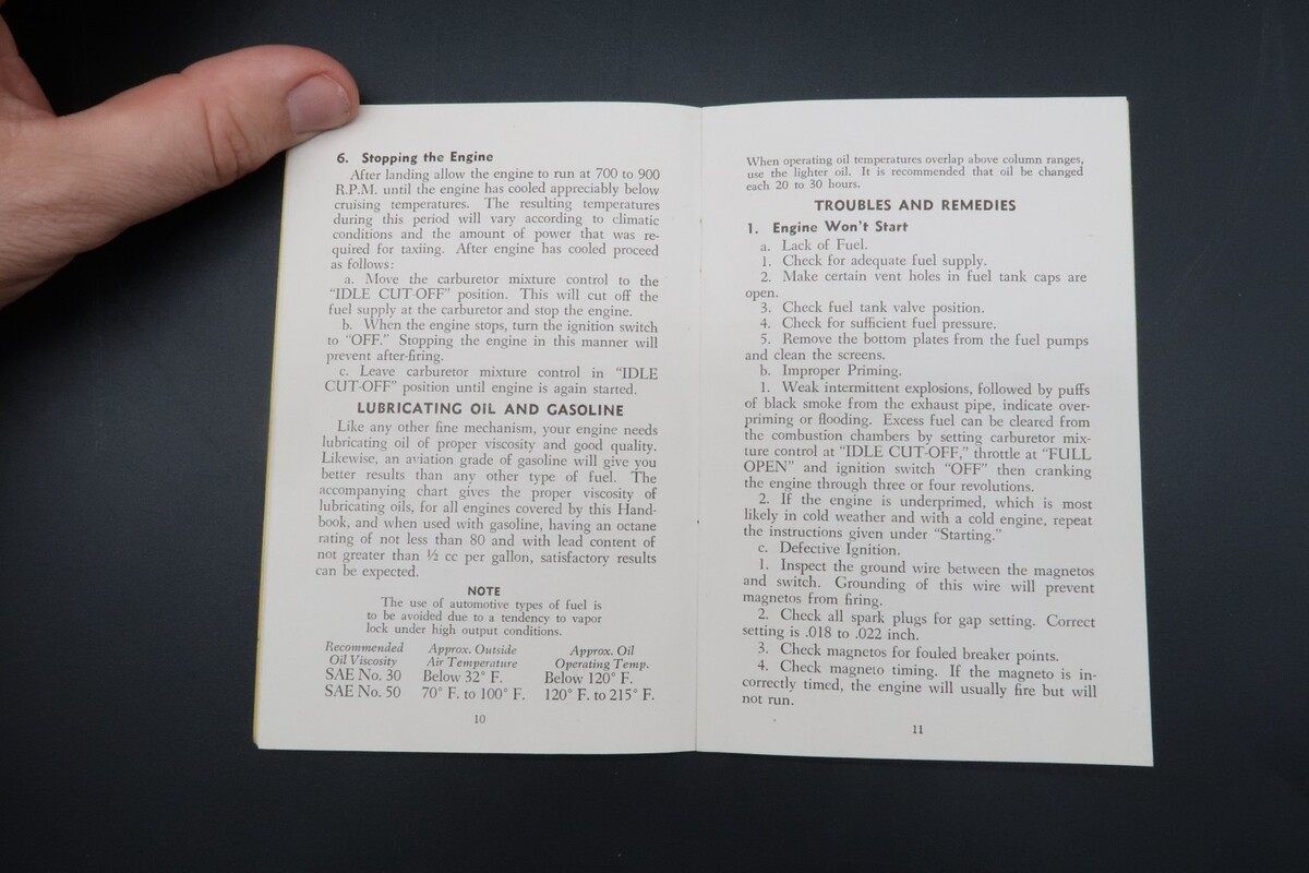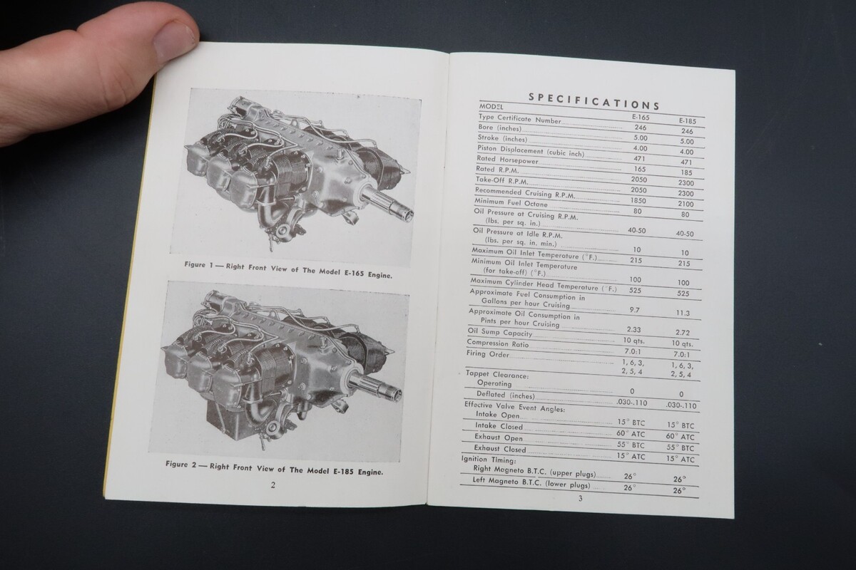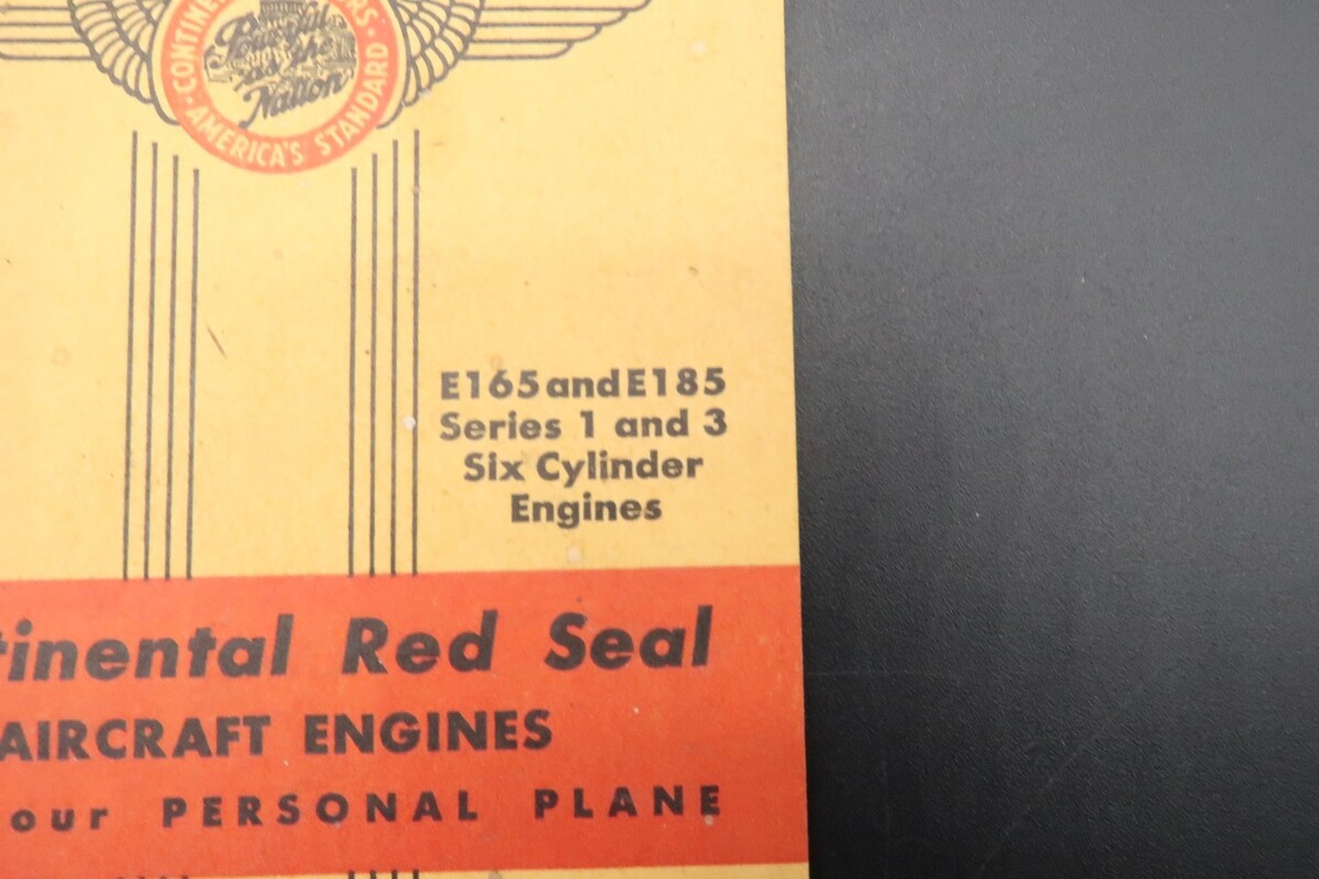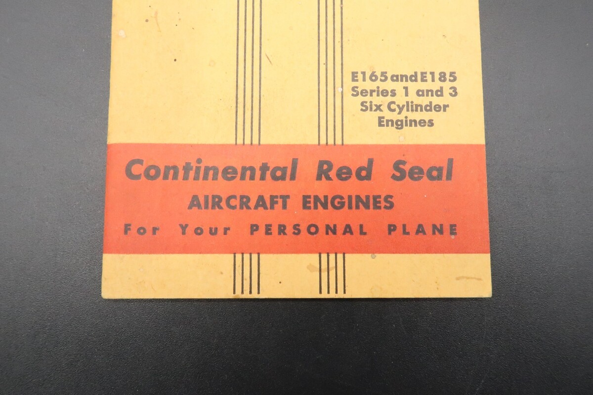 Vtg Continental Red Seal Aircraft Engines Operator's Handbook E165 E185 6 Cyl