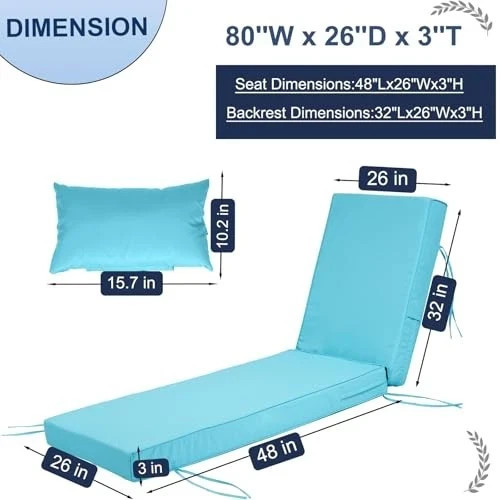 Chaise Lounge Cushions Outdoor with PP Cotton 80*26*3 Lake Blue Set of 2
