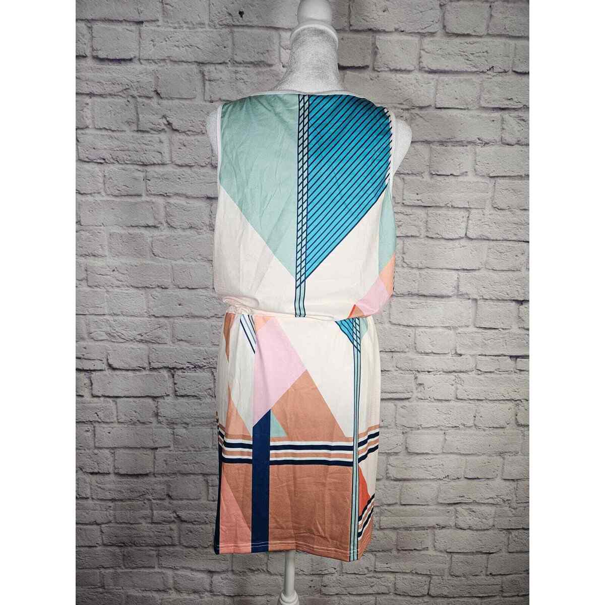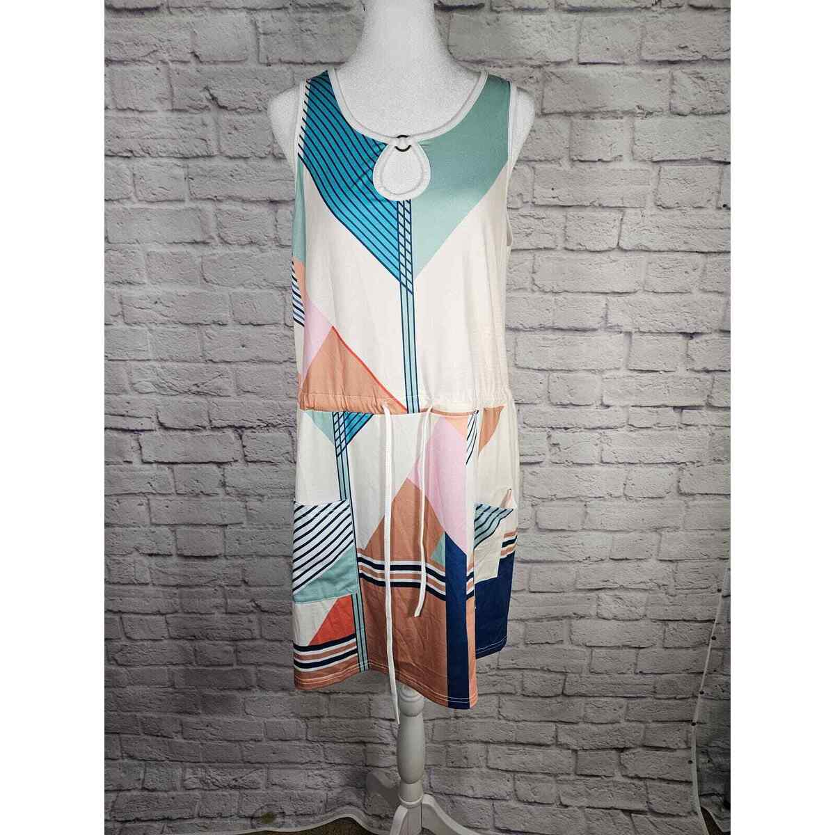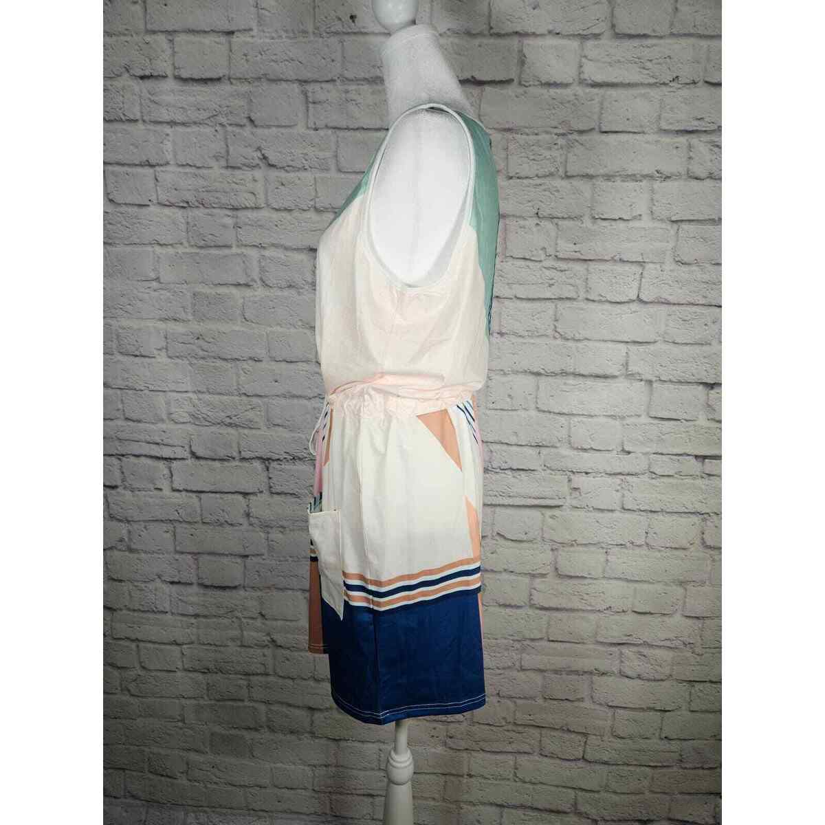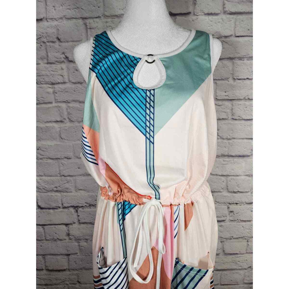 Saukole Women's One Piece Dress Romper Tank Geometric Size L Blues Browns NWT