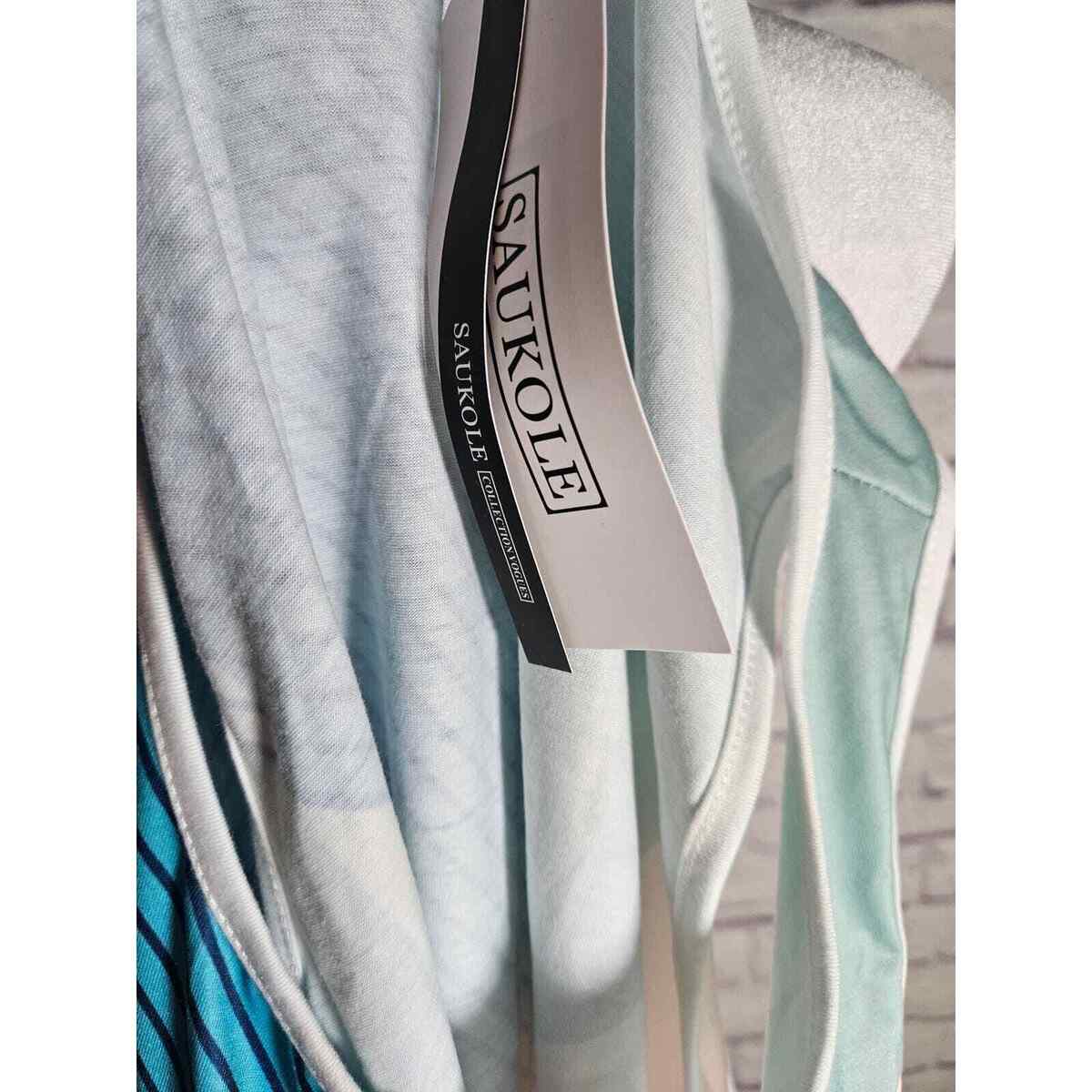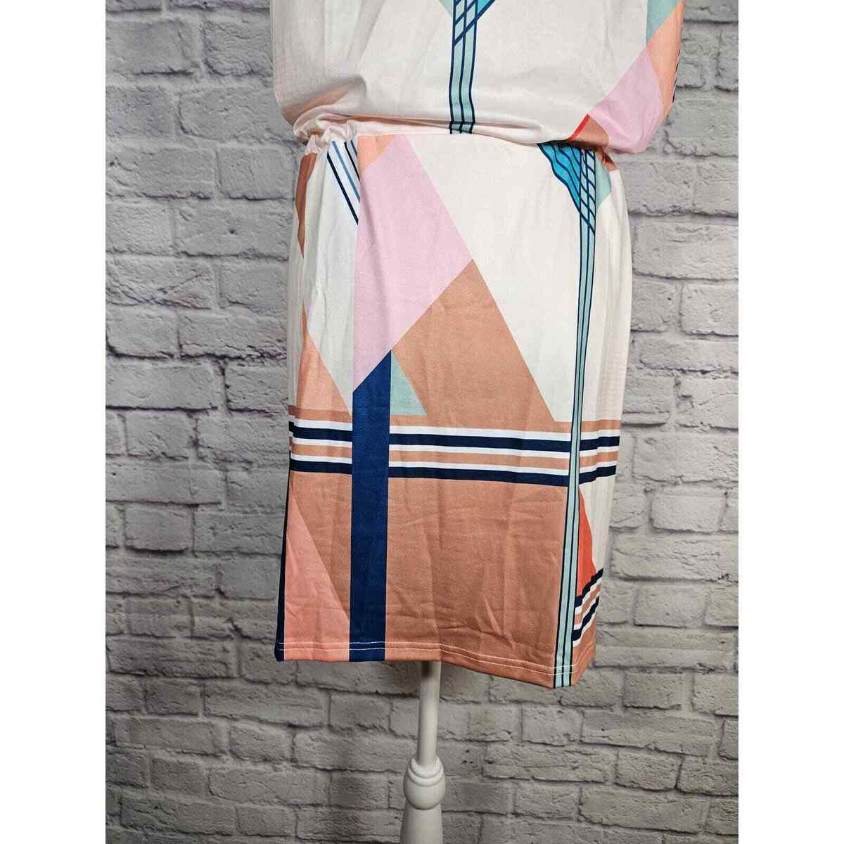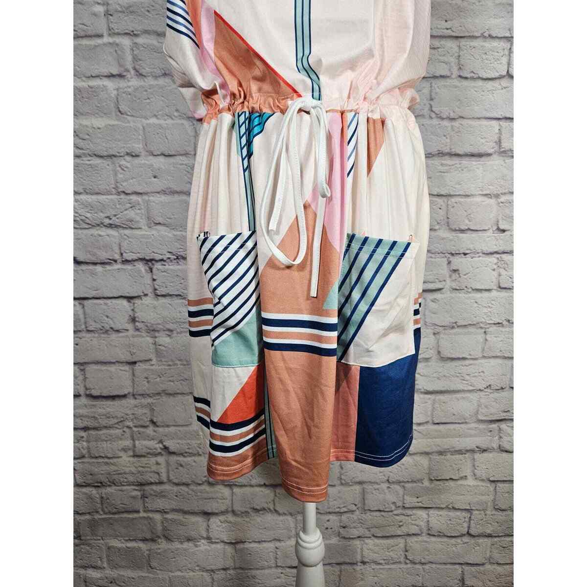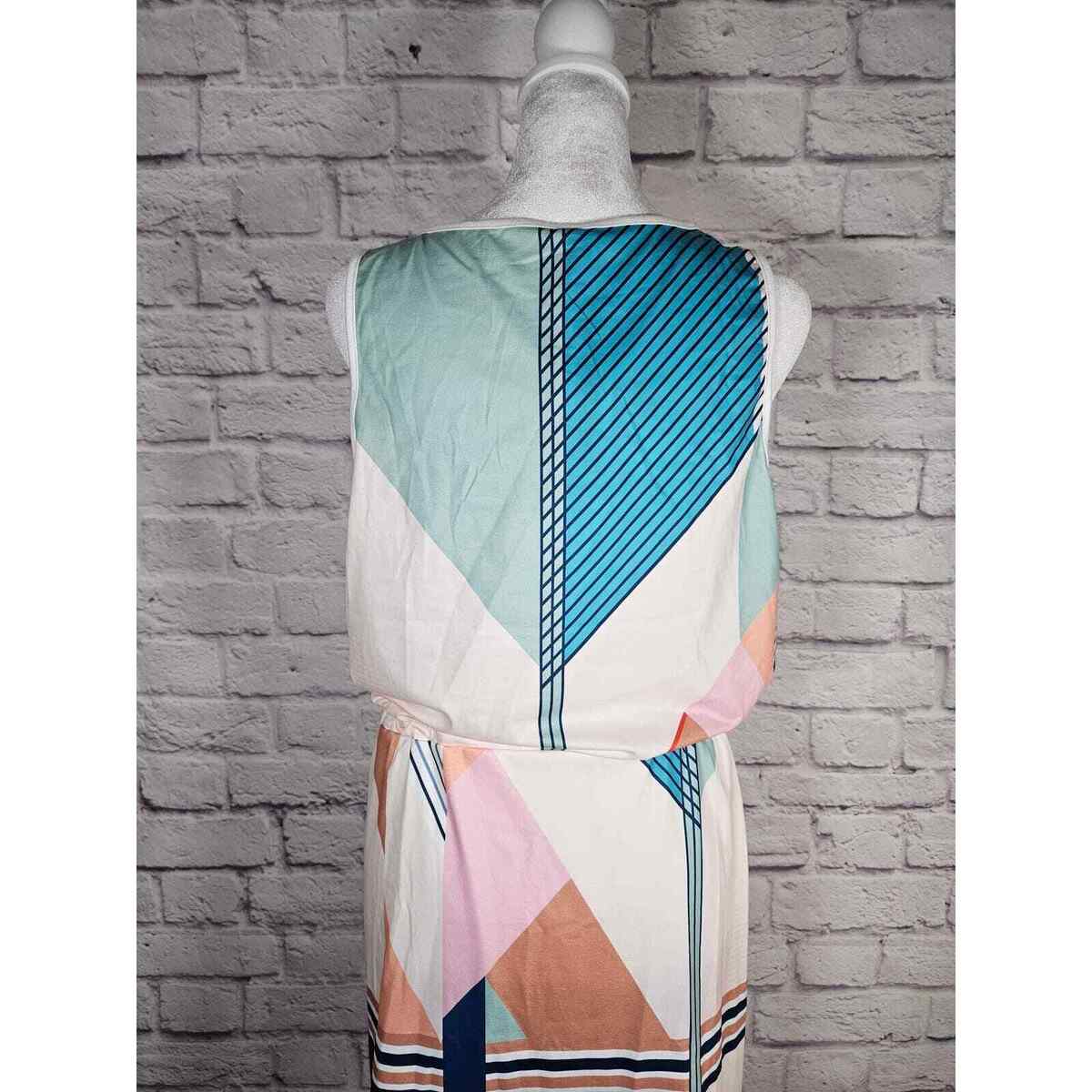 Saukole Women's One Piece Dress Romper Tank Geometric Size L Blues Browns NWT