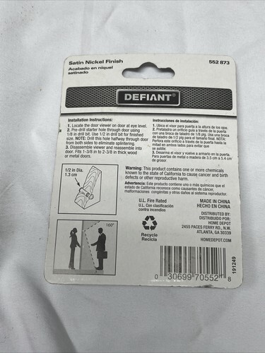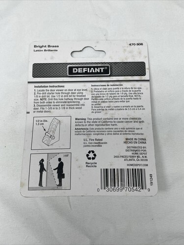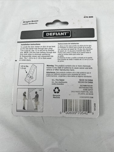 New! Packages have some wear and tear due to storage and shelf life. 2 are finished in bright brass, the other is finished in satin nickel. All have 160 degrees door view. Please see pictures for condition details and measurements.