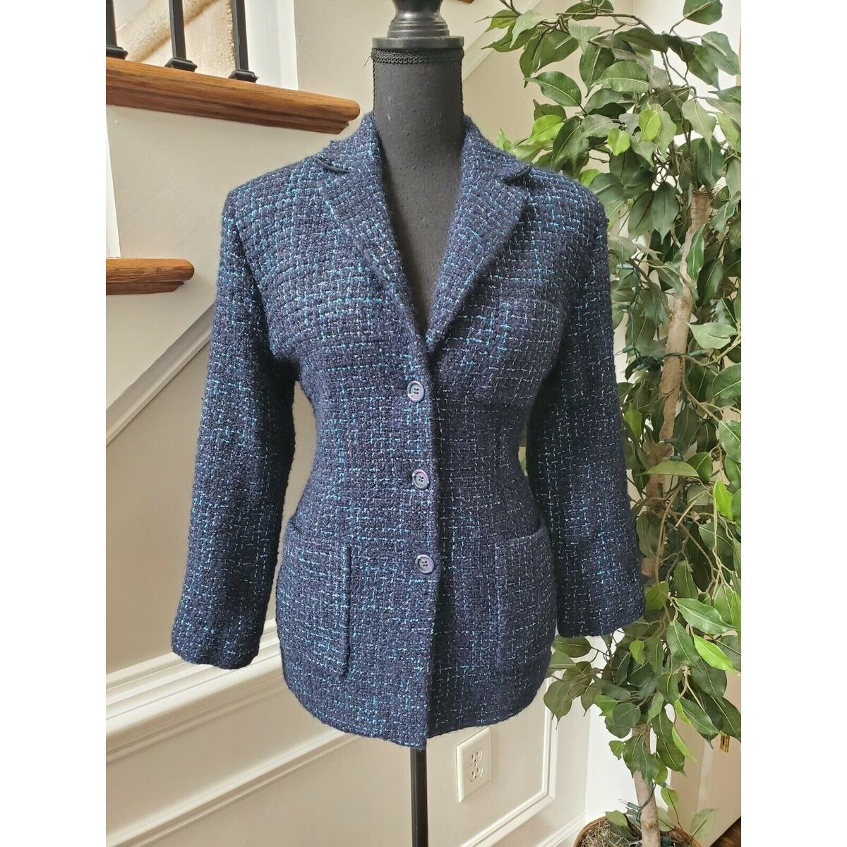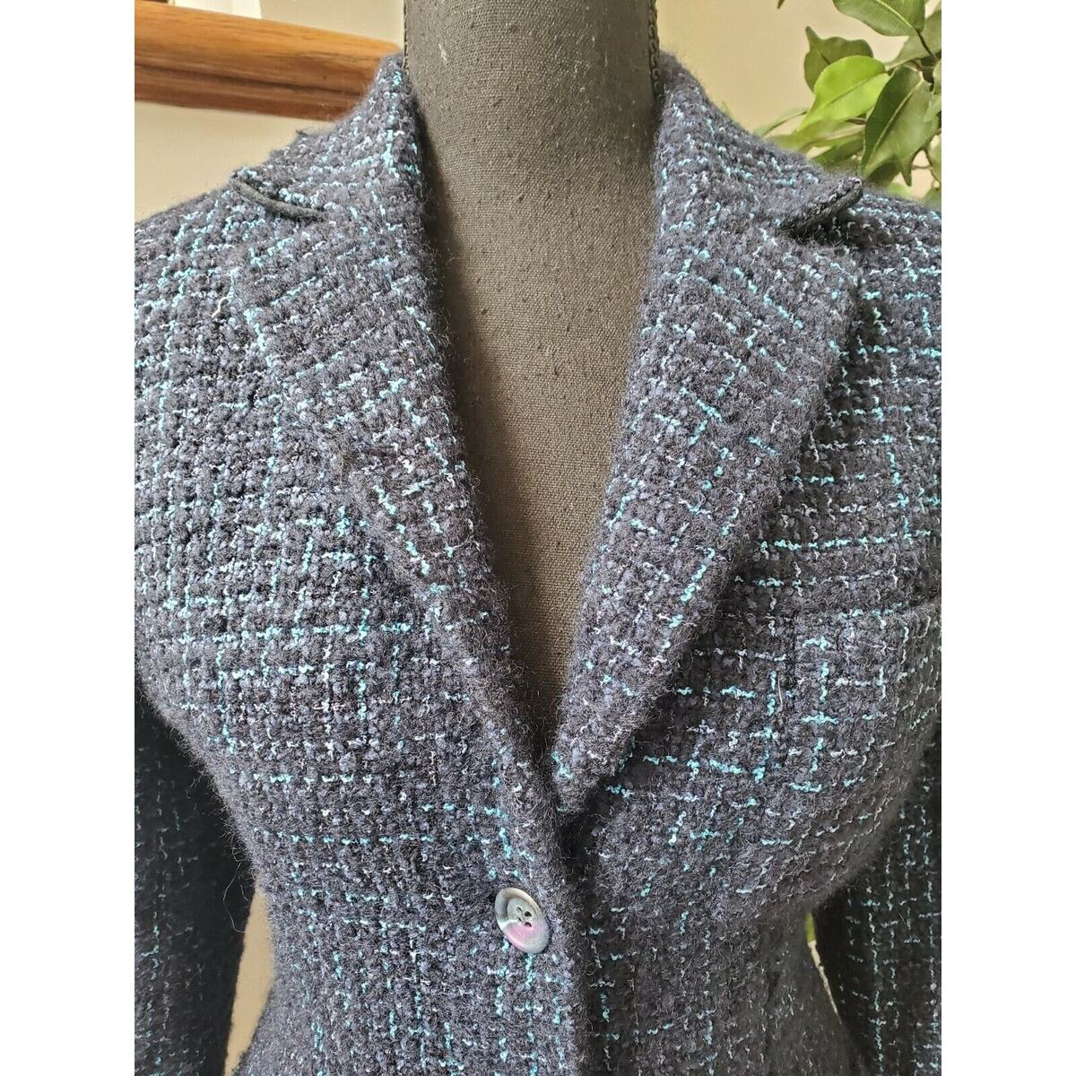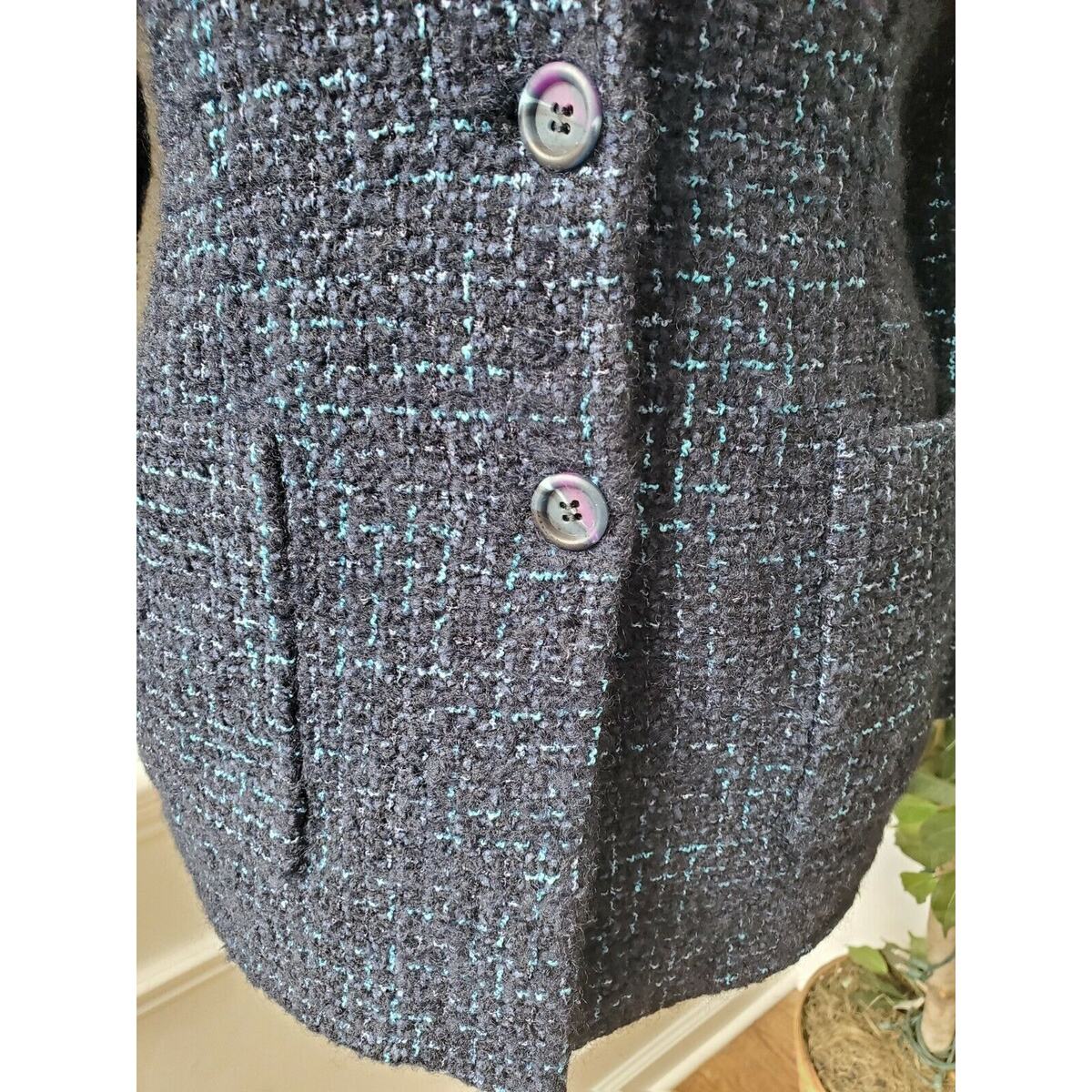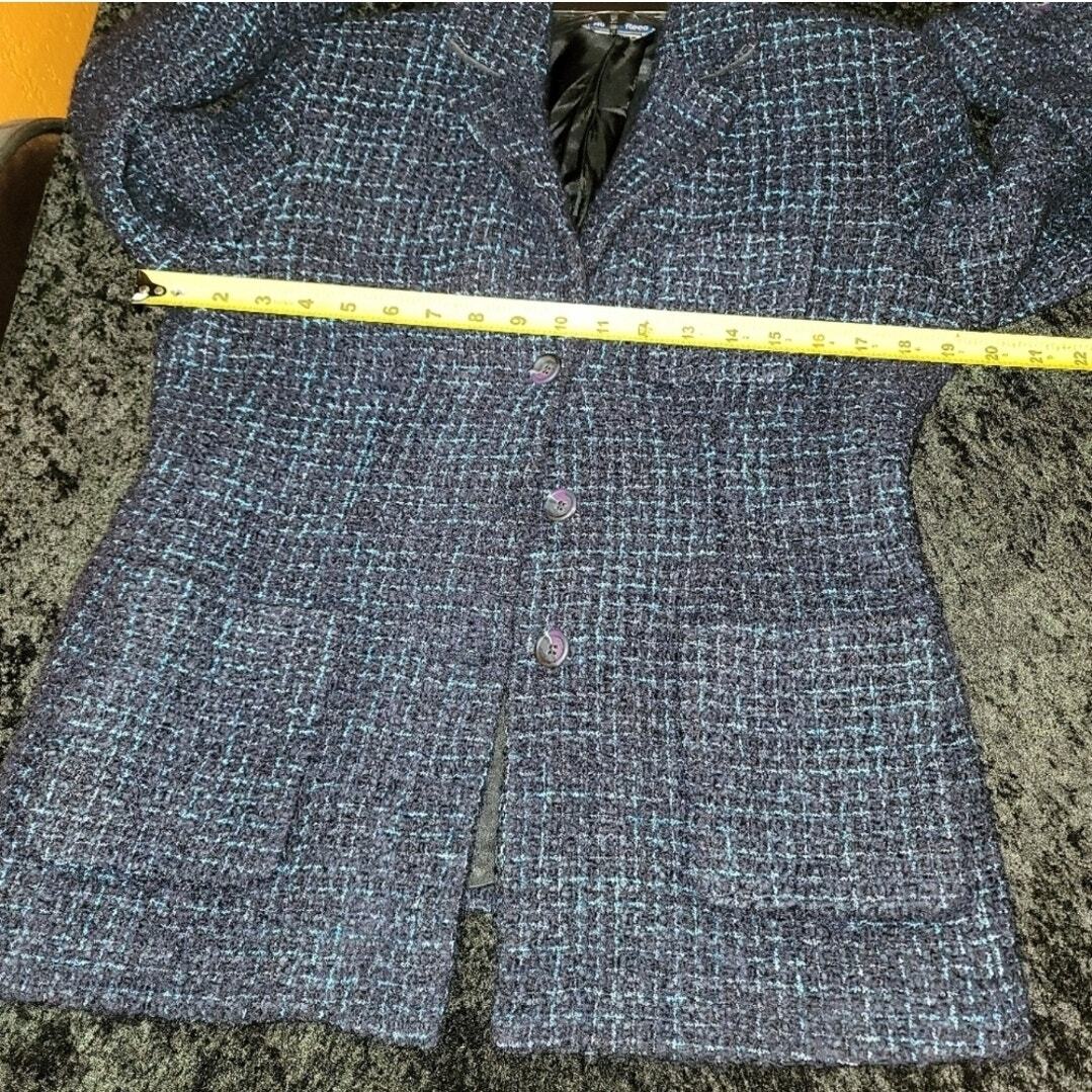 Vintage Austin Reed Women's Blue Cotton Collared Long Sleeve Blazer Coat M