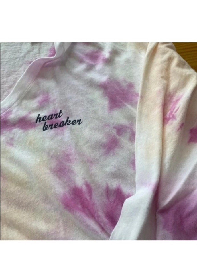 Victoria's Secret PINK Heart Breaker Long Sleeve Cropped Tie Dye Shirt Lg V Neck