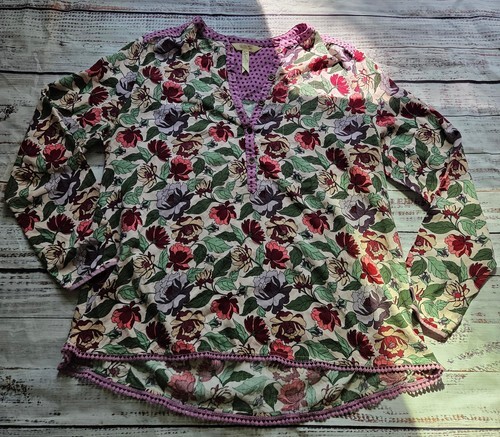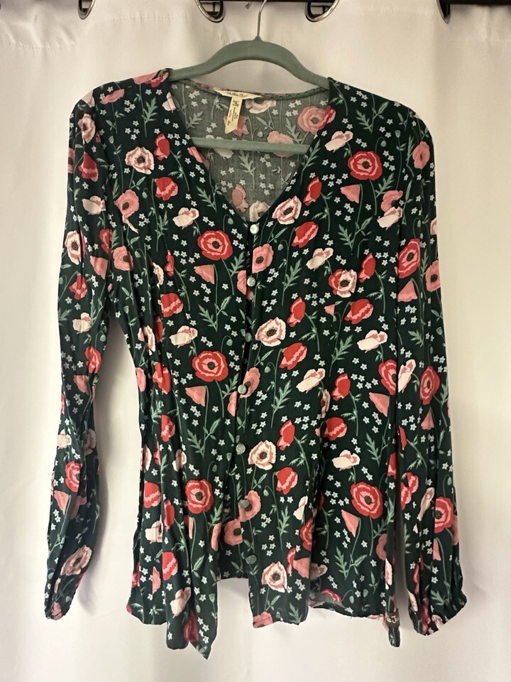Matilda Jane Womens Medium Yesteryear Button Blouse Poppies Floral Lightweight