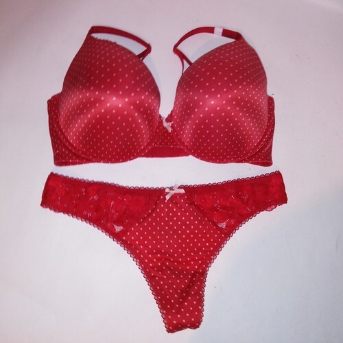 Victoria's Secret Black Dream Angels Push Up Without Pad Bra Thong Set 36DDD/XL