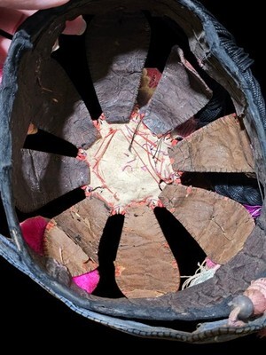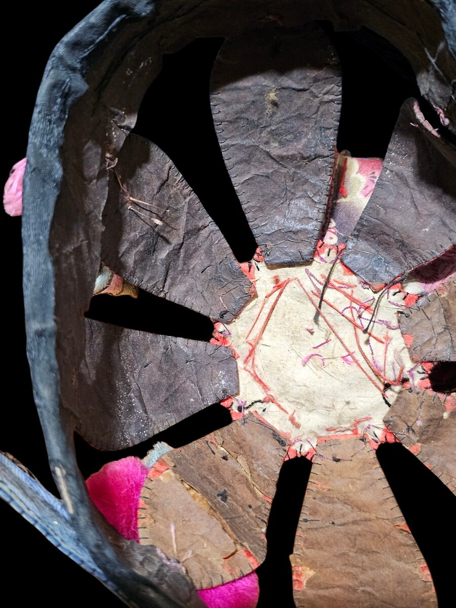 Interior shows original radial paperboard crown construction typical of period Chinese opera headgear.