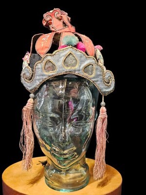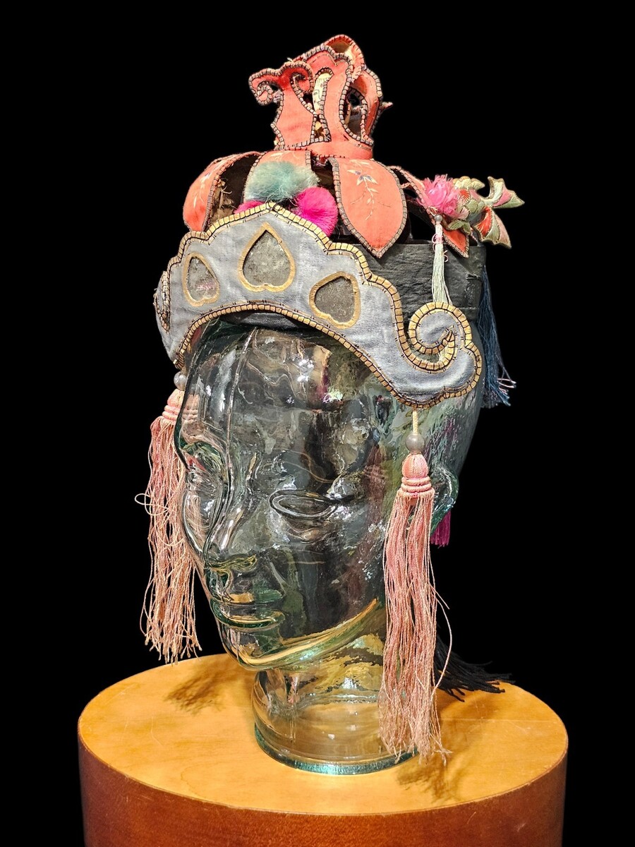 An authentic antique Chinese opera headdress, well suited for collectors of Asian textiles, theatrical costume, ethnographic material, or historic stage artifacts.