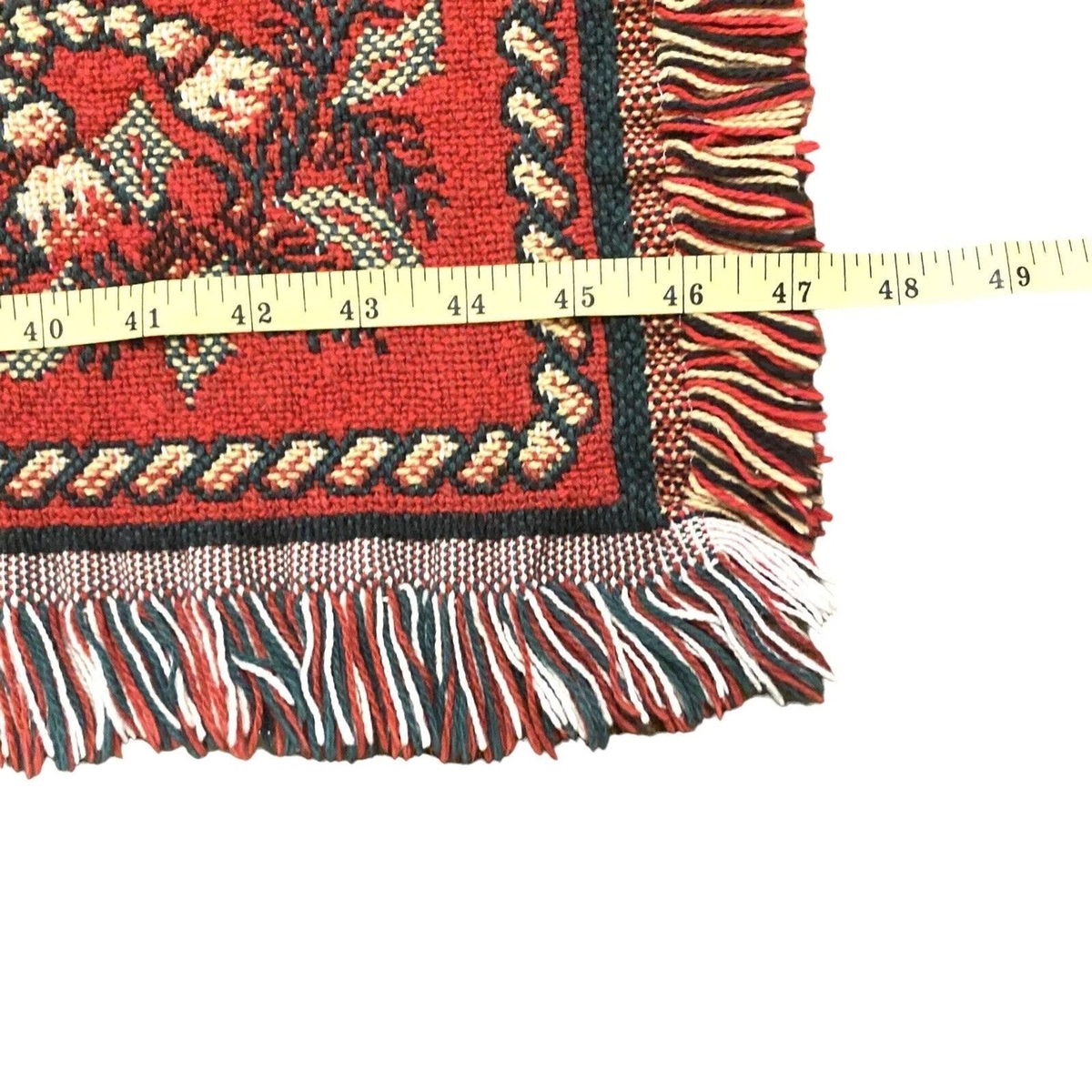 Christmas Tapestry Throw Blanket Goodwin Weavers 70 x 47 Fringe Red Green USA