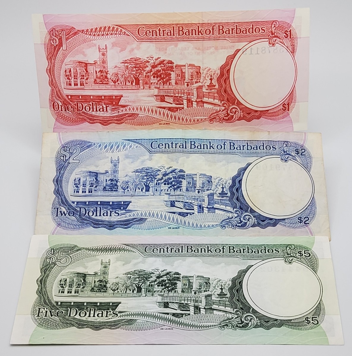 BARBADOS BANKNOTE SET ~ $1 1973 P-29 / $2 1986 P-36 / $5 1973 p-32