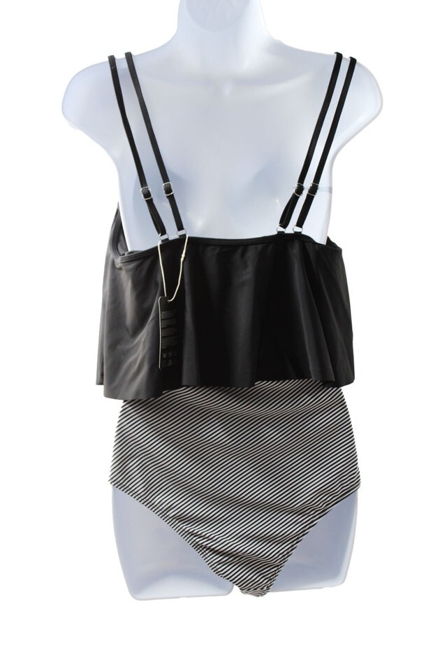 Swimsuit SouqFone High-Waisted Tummy Control Striped 2 Piece Swimsuit Size L