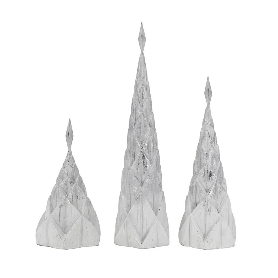 Create an elegant Christmas display on a living room shelf with these tree figurines, or use them in a winter-themed dining room tablescape